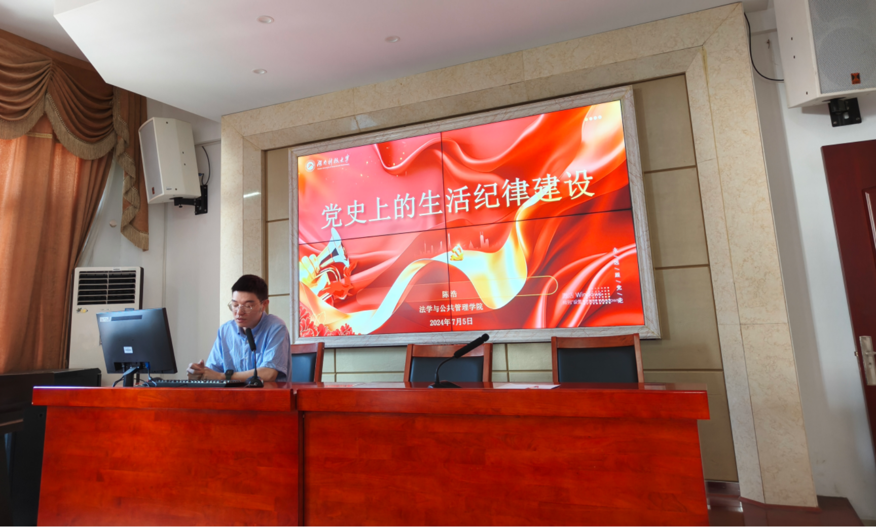 7月5日下午,学院全体教职工党员于立言楼A425开展了以“党史上的生活纪律建设”为主题的“微党课”,此次党课由学院陈浩同志主讲。