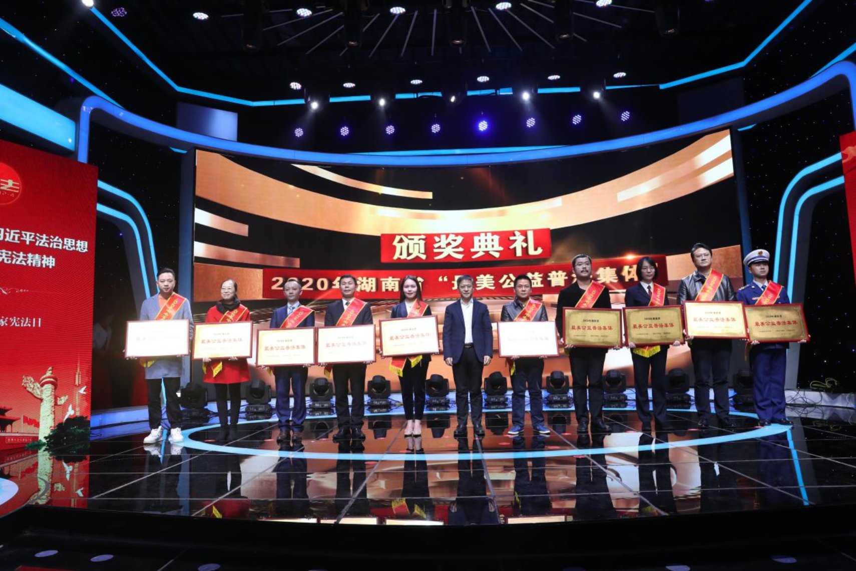 2020年12月3日下午,“12·4国家宪法日暨法治湖南建设年度盛典”活动在红网演播中心举行。省委常委、省政法委书记李殿勋,省人大常委会副主任周农,省政协副主席胡旭晟,副省长、省公安厅厅长徐显辉,省高级人民法院院长田立文,省人民检察院检察长叶晓颖等领导和嘉宾出席活动。在系列颁奖仪式上,bevictor伟德官网法律协会被正式授予“湖南省最美公益普法集体”荣誉称号,成为本次评选活动中唯一获得荣誉的高校集体。自湖南省开展“最美公益普法集体”评选活动以来,目前仅有湘潭大学、湖南师范大学、中南大学以及bevictor伟德官网等4所高校获此荣誉。