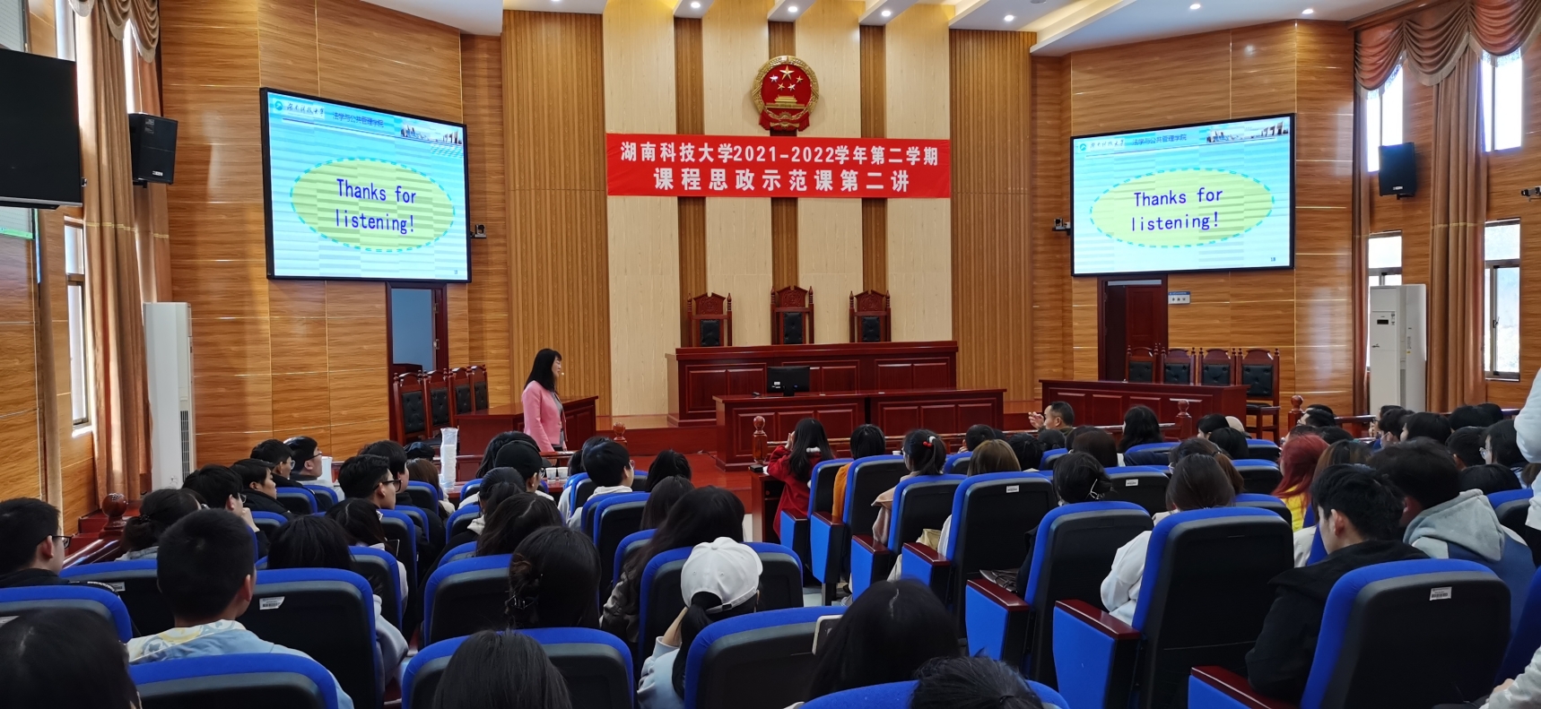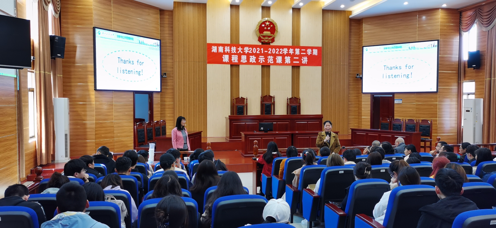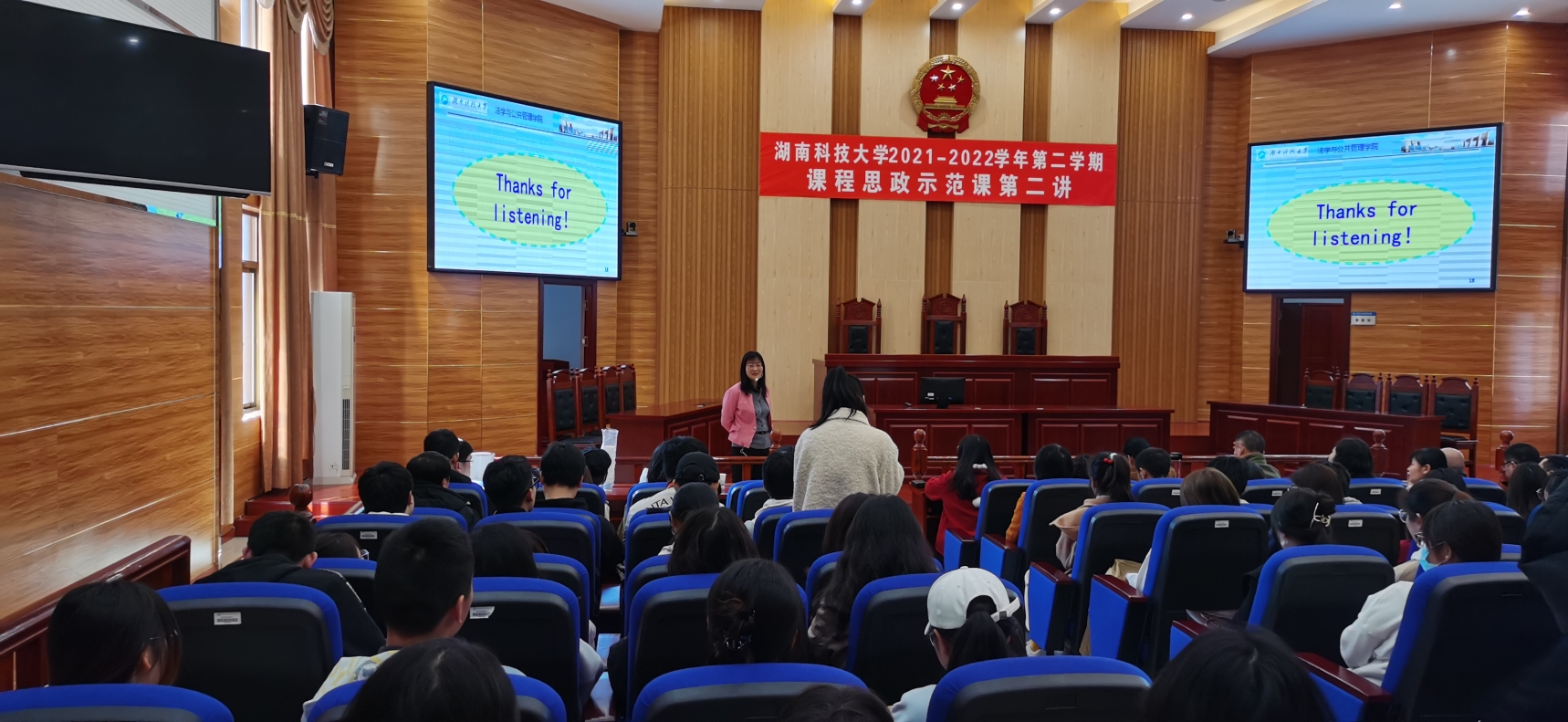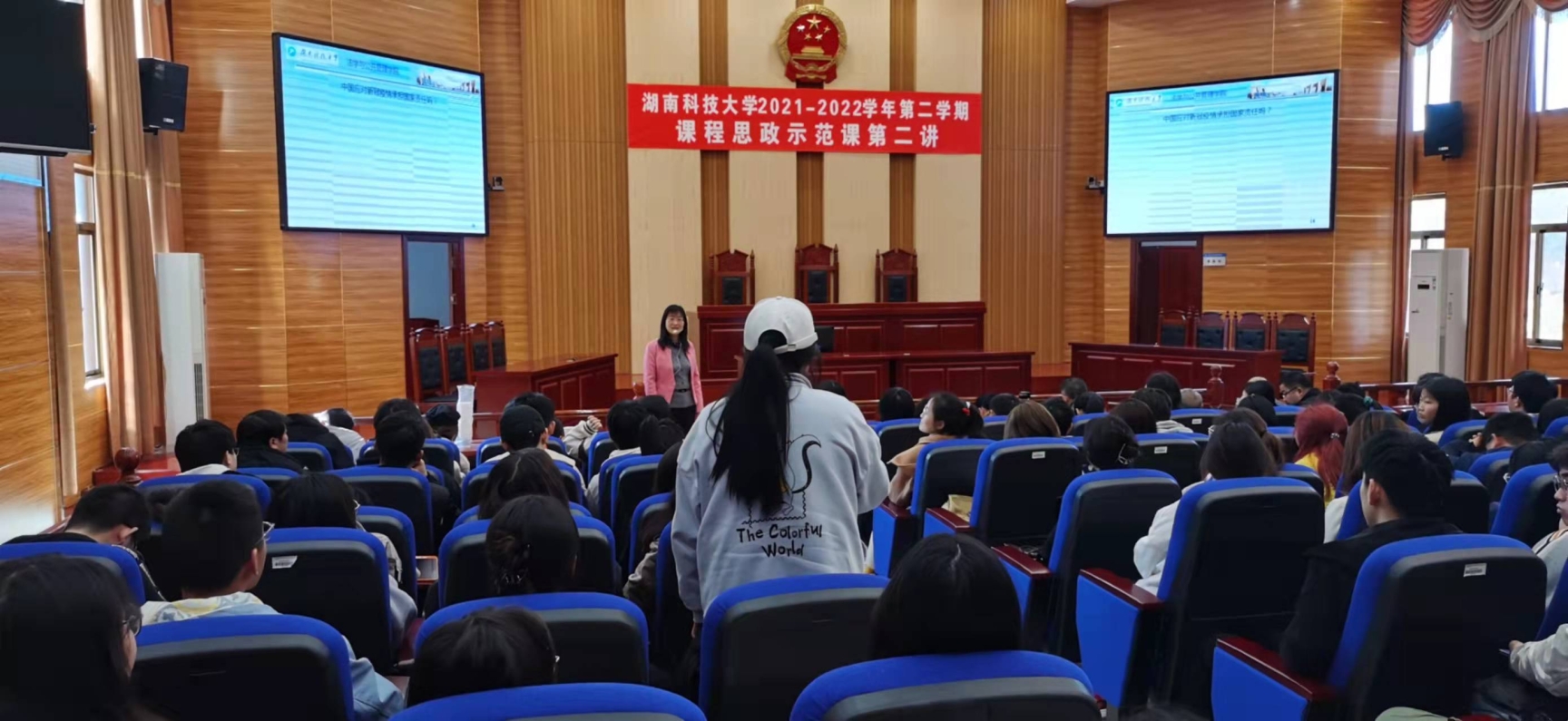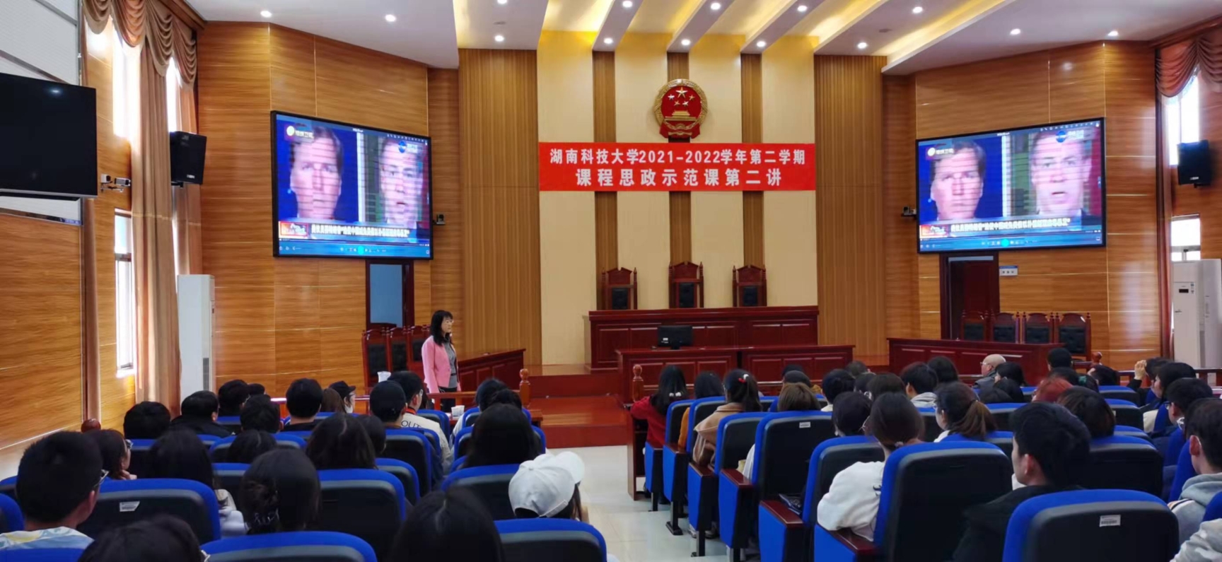 在示范课开始前,法管学院党委书记邱帅萍发表讲话指出,“课程思政示范课”是为了落实立德树人的根本任务,把思想政治工作贯穿教育教学全过程,达到知识传授、能力培养、价值塑造“三位一体”的课程教学目标,有利于打造专业课程与思政课程同向同行的育人格局。