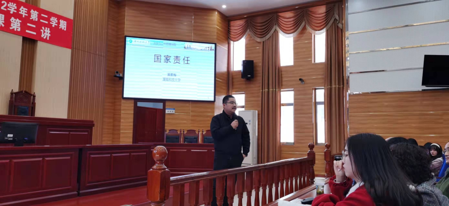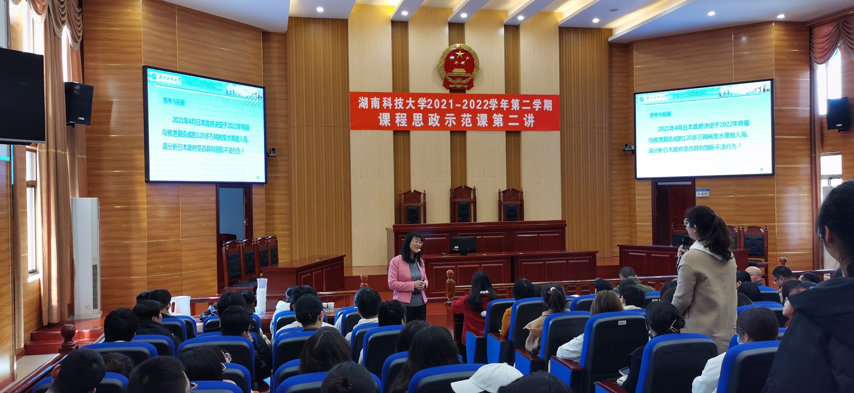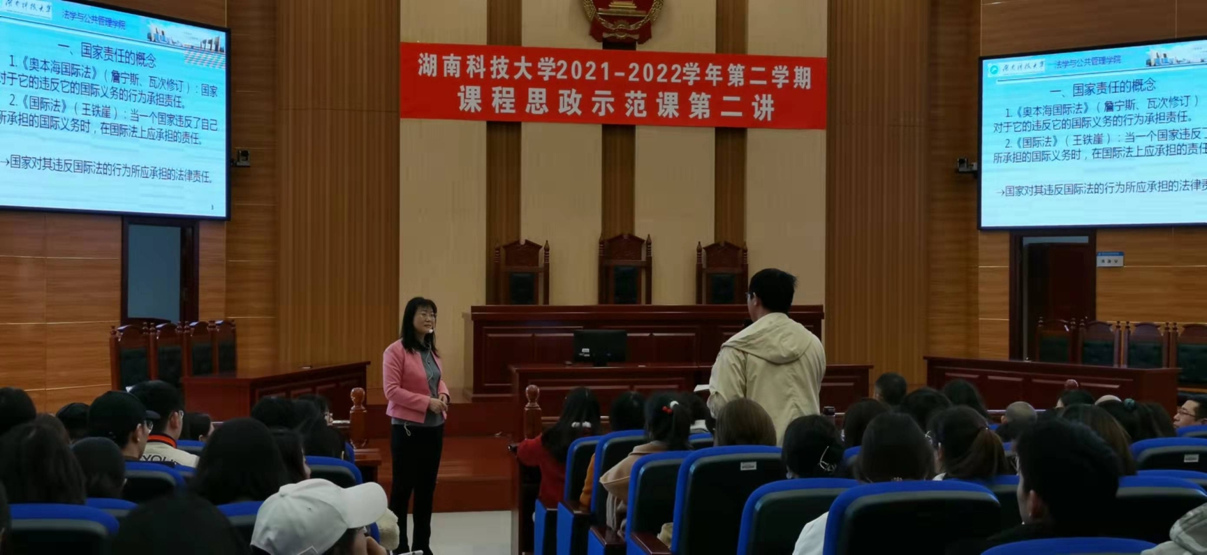 打造高校课程思政课堂是积极落实习近平总书记重要指示精神的实践探索,已经成为高校教育改革的一个重要方向。2022年3月8日下午,bevictor伟德官网“课程思政示范课”第三讲在法管学院模拟法庭成功举行。本次示范课由法管学院黄素梅副教授主讲,题目是“国家责任的构成”。示范课由法管学院教学副院长王明主持,教务处相关领导、学校教学督导、本院以及其他学院师生共180余人到场观摩学习。