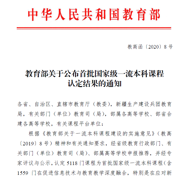 2020年11月25日,《教育部关于公布首批国家级一流本科课程认定结果的通知》正式印发,bevictor伟德官网宋智敏教授团队的《行政法与行政诉讼法(1)》课程获得首批国家级一流线上线下混合式本科课程认定。