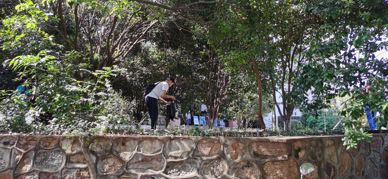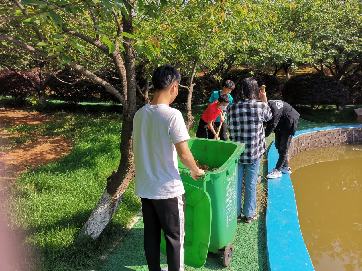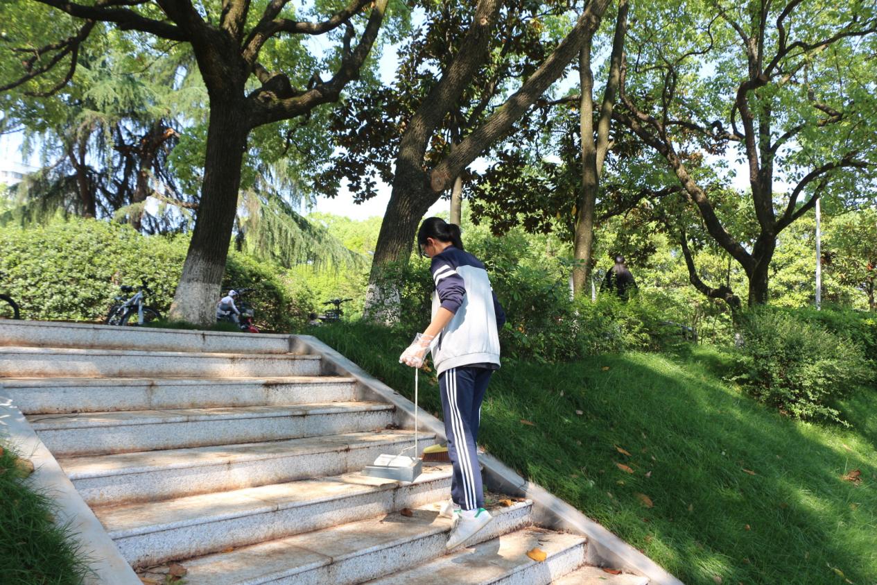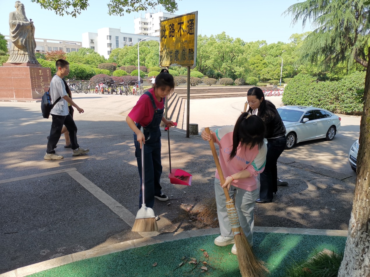 ▲师生一起劳动共建美丽校园