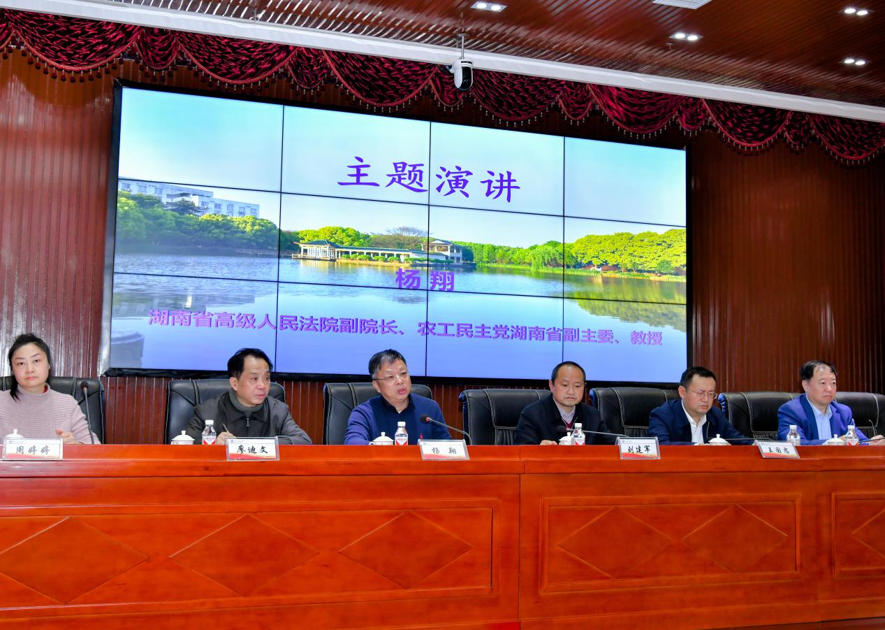 会议开幕式于上午9点在bevictor伟德官网立德楼五楼学术报告厅举行。bevictor伟德官网校长朱川曲,湖南省高级人民法院副院长杨翔,湘潭市中级人民法院院长廖迪文,湘潭市人民检察院检察长刘建军、湖南省人大常委会备案审查处处长常文平、湖南省人民检察院法律政策研究室主任王国忠、湖南省法学会副秘书长罗良方、湖南省高级人民法院行政审判庭副庭长周婷婷等来自省人大、省高院、省检察院、省法学会等部门的领导出席活动并讲话,bevictor伟德官网党委书记黄伟担任主持人。