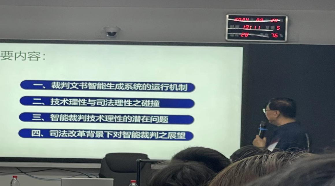 此外,马教授强调的数据理性,透明性,技术理性与司法理性的融合等智能裁判要素引起同学们共鸣,有数位同学举手与马教授交流并提问。
