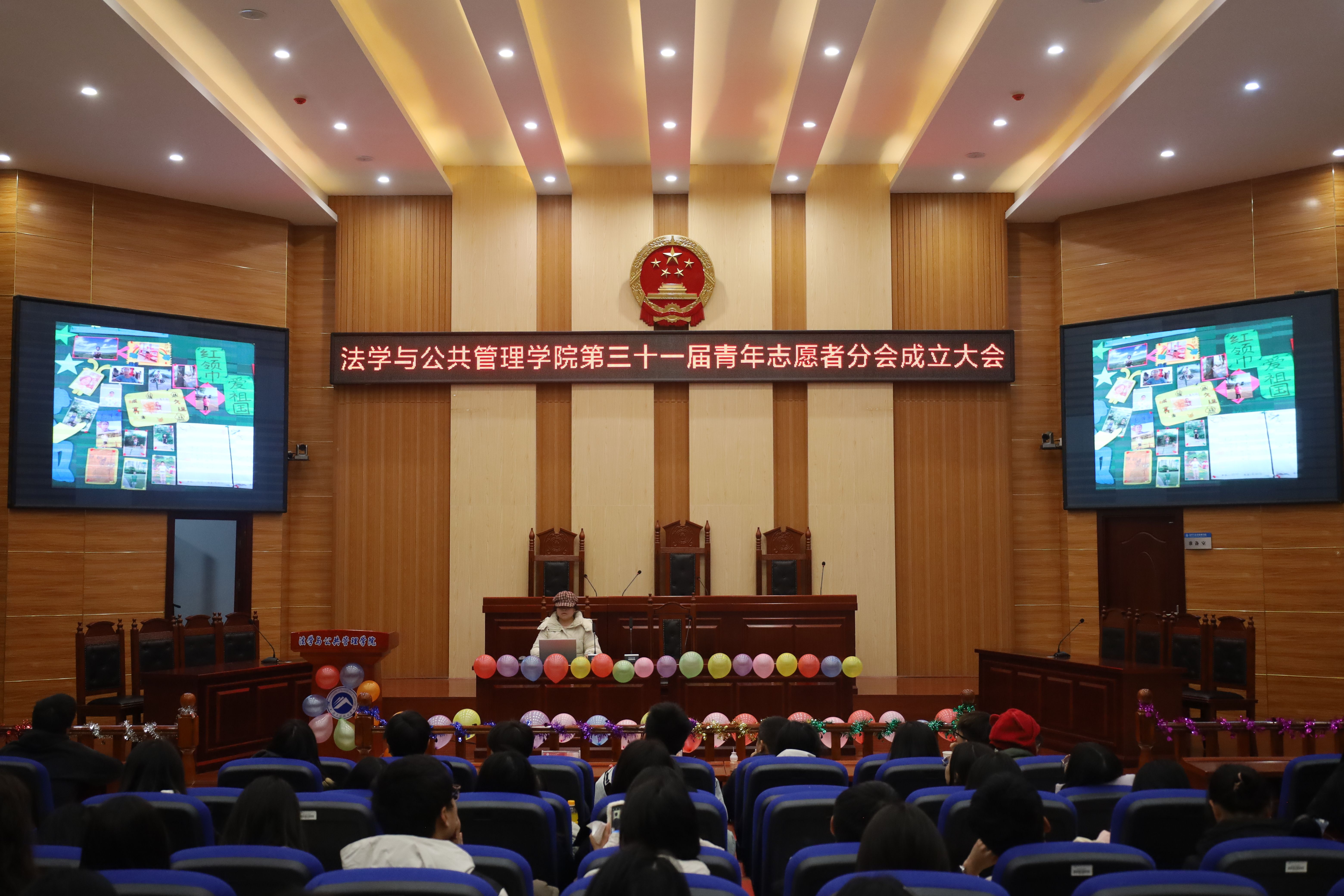 为弘扬志愿精神,提升青少年的志愿服务意识,bevictor伟德官网第三十一届bevictor伟德官网青年志愿者分会成立大会于12月20日晚在立言楼模拟法庭举行,院党委副书记范军豪,学工办主任郭志军、院团委书记兼24级辅导员李珍妮出席本次活动。