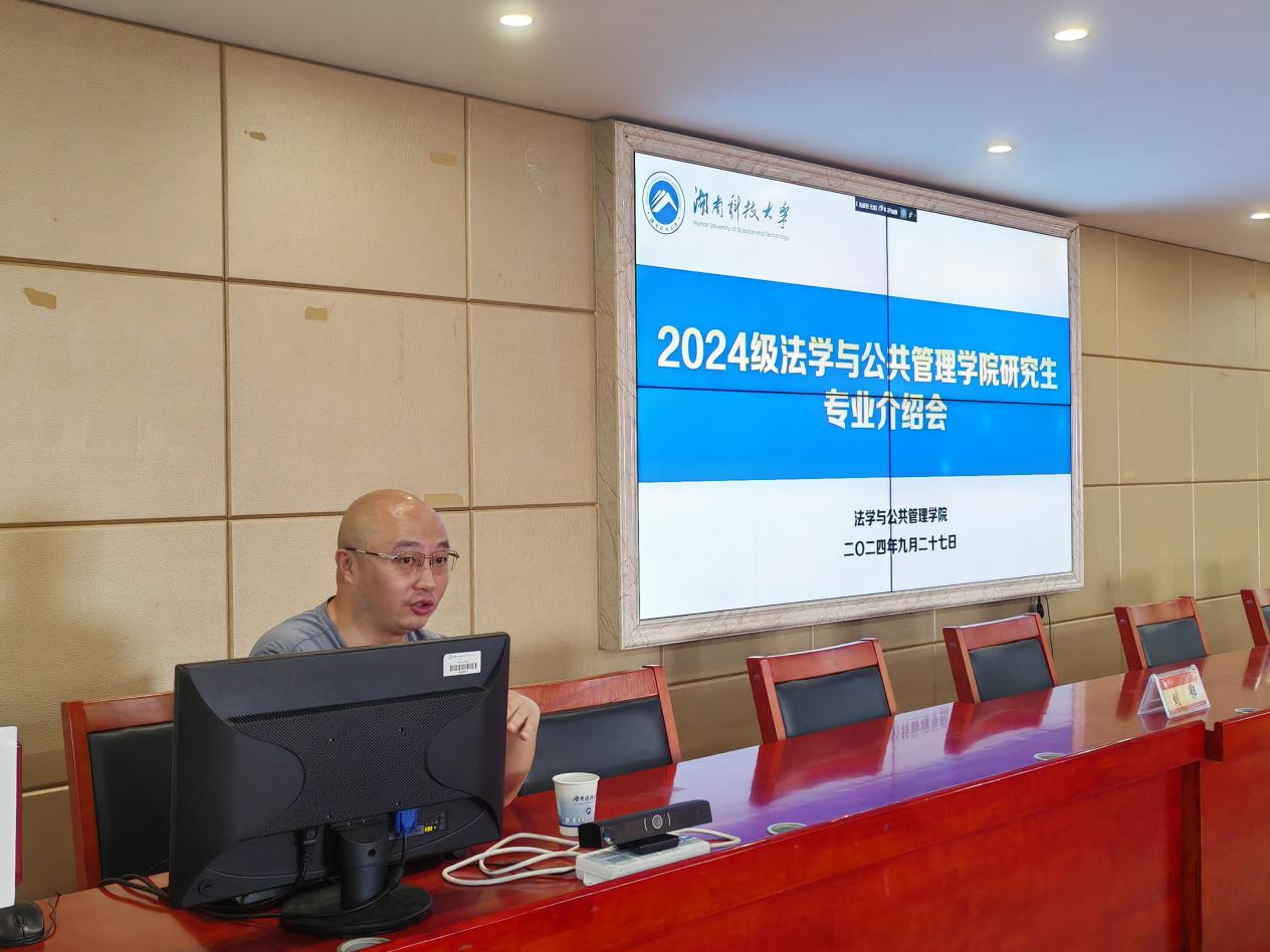 介绍会伊始,刘鄂对法律硕士进行了全面而深入的介绍,强调了法律硕士广阔的发展前景,让新生们深刻认识到法律在现代社会中的核心地位。此外,刘鄂还介绍了新生可参加的各项专业赛事,如湖南省研究生法律案例大赛等。同时,他也鼓励新生们积极参与高等级学术会议或论坛,以拓宽视野,提升专业素养。刘鄂在会议中指出:“积极参与学术活动不仅可以提升自己的专业能力,而且还能拓宽人际交往,对未来的职业生涯大有裨益。”