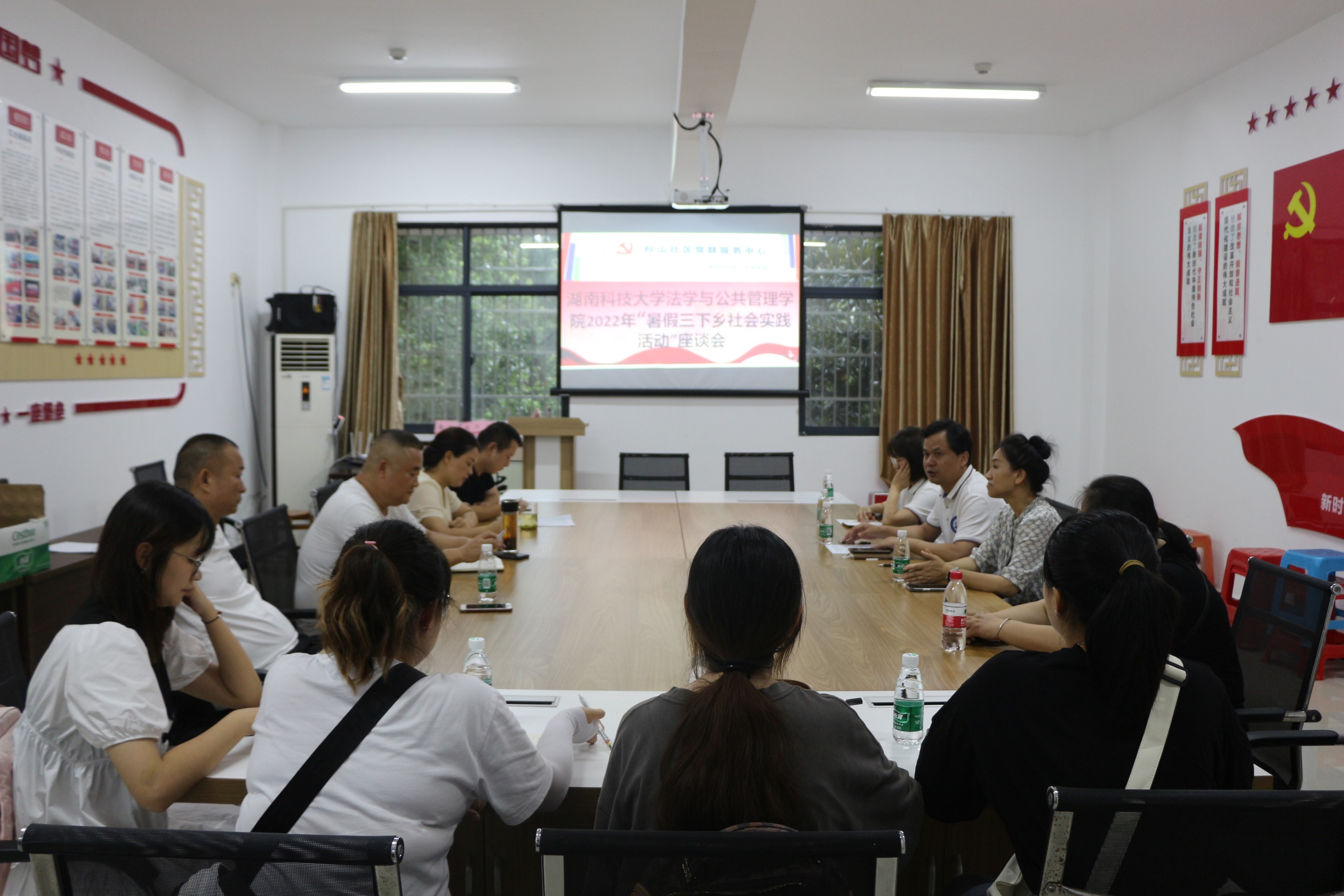 为进一步强化bevictor伟德官网与杉山社区的深入合作,促进暑期“送法下乡”和“三下乡社会实践活动”顺利开展,在前期多次沟通的基础上,7月4日下午,bevictor伟德官网,bet伟德官方网站与湘潭经开区和平街道杉山社区在社区会议室召开2022年暑期“送法下乡”和“三下乡社会实践活动”协调会。bevictor伟德官网党委副书记叶军、法律协会指导老师陈小杉、公共管理学会指导老师王慧慧、学院部分学生干部,与杉山社区党委书记居委会主任罗自光、党委副书记居委会副主任彭海均、党委副书记刘利平、党委委员谢金钱等就本次暑期“送法下乡”和“三下乡社会实践活动”的相关内容进行深入沟通、安排。