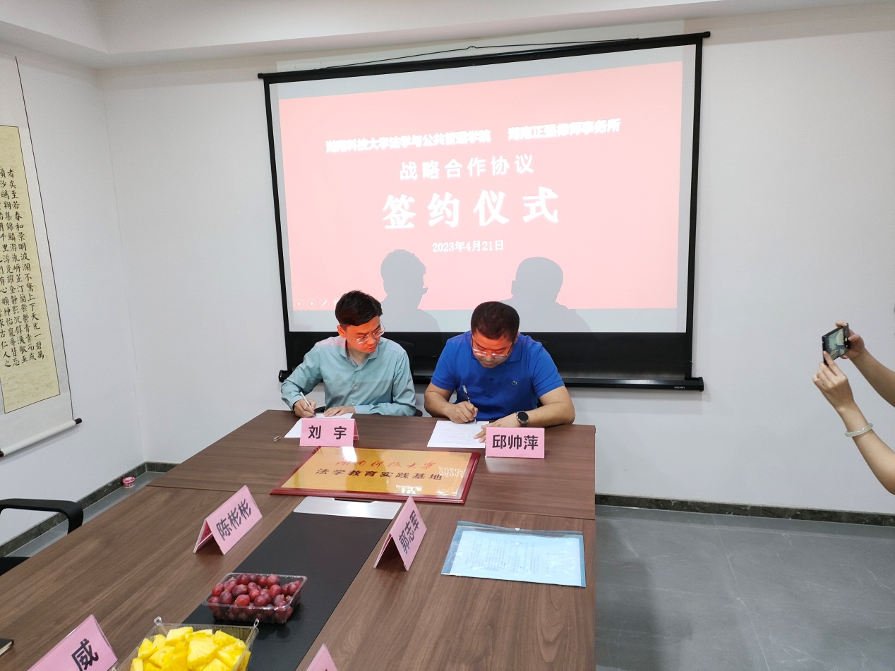 4月21日上午,bevictor伟德官网,bet伟德官方网站与湖南正强律师事务所举行法学教育实践基地授牌仪式,双方签订了战略合作协议,并聘请正强律师事务所主任刘宇律师为bevictor伟德官网法律硕士专业学位实践型硕士生指导教师。出席本次仪式的有法管学院院长邱帅萍教授、法学系主任吴四江副教授、章小兵老师、郭志军老师及正强律师事务所主任刘宇、党支部书记陈威、运营总监陈彬彬、陶剑锋律师等。