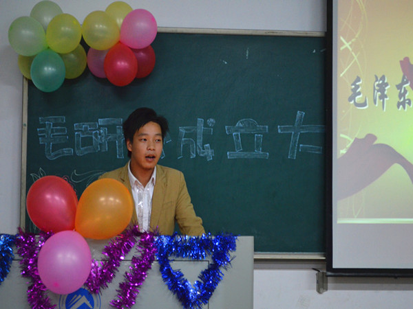 ——记bevictor伟德官网第二十三届毛研会成立大会 10月22日晚上七点,bevictor伟德官网第二十三届毛泽东邓小平理论学习研究会成立大会在九教408教室隆重举行。本次大会由毛研会倾情举办,bevictor伟德官网党委副书记叶军老师、团委第一副书记龙志斌、法律协会会长吴志花等人出席,毛研会13级新生全体参加。 大会伊始,毛研会会歌《东方红》奏响全场,正式拉开大会序幕。接着,毛研会副理事刘晓娜上台,带领所有人起立进行了慷慨激昂的宣誓,而观看视频的环节更是使全场气氛活跃了起来。“你可以否定我的现在,却否定不了我的将来!”一行行振奋人心的话语从大屏幕上划过,一幕幕精彩纷呈的画面在众人面前呈现,毛研会的形象在众人眼中渐渐变得鲜活。无论是激烈的讨论会,还是徒步湘潭行等颇具特色的活动,都牢牢吸引住了与会者的眼球。 团委第一副书记龙志斌作出简要发言,他指出社团是大学丰富生活的一部分,鼓励新生锻炼自己展示才能,并祝愿毛研会能取得更大的辉煌。毛研会策划部长钟霓上台向新生详细介绍了毛研会各项情况;毛研会上任会长周雪同学谆谆叮嘱新一届的干部们要勇担重责,做好准备再出发,也希望新会员们积极投身社团活动以历练自己。在新一届会长周金雯做完未来一年发展的工作计划报告后,毛研会会旗交接仪式庄重举行,全场气氛达到最高潮。 叶书记在总结发言时提到,一个社团要发展壮大很不容易,只有所有人齐心协力,才能有所成果。他激励新生积极为毛研会的事业添砖加瓦,并明确地指出:毛研会必须发掘自身优势,打造特色品牌,开拓创新,拓展影响力。欢笑声中,嘉宾们合影留念,毛研会成立大会顺利落下帷幕。 (责任编辑:admin) |