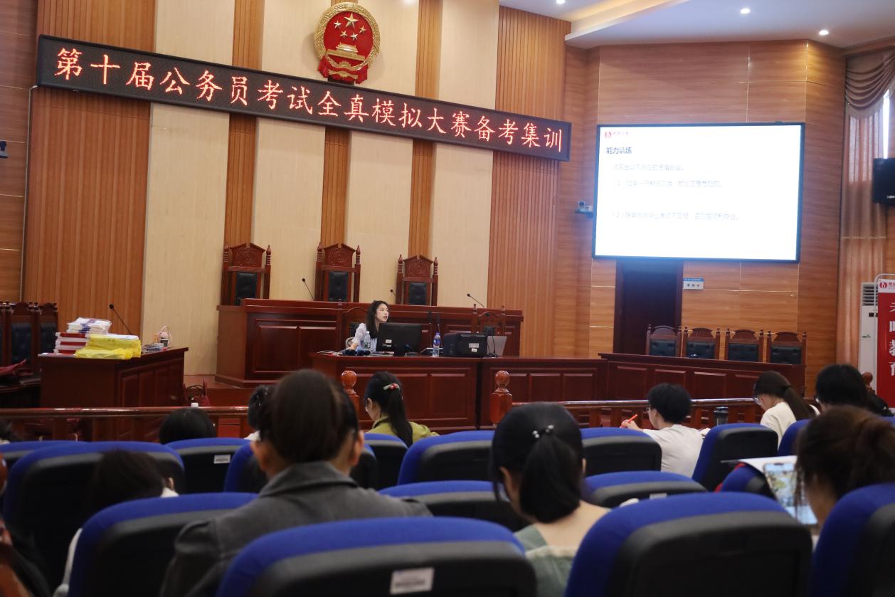 为帮助广大学生高效备考国家公务员考试,5月25日-26日,由我校招生就业处主办、bevictor伟德官网承办的第十届公务员考试全真模拟大赛第四阶段“笔试集训”在立言楼A3-2模拟法庭开训。