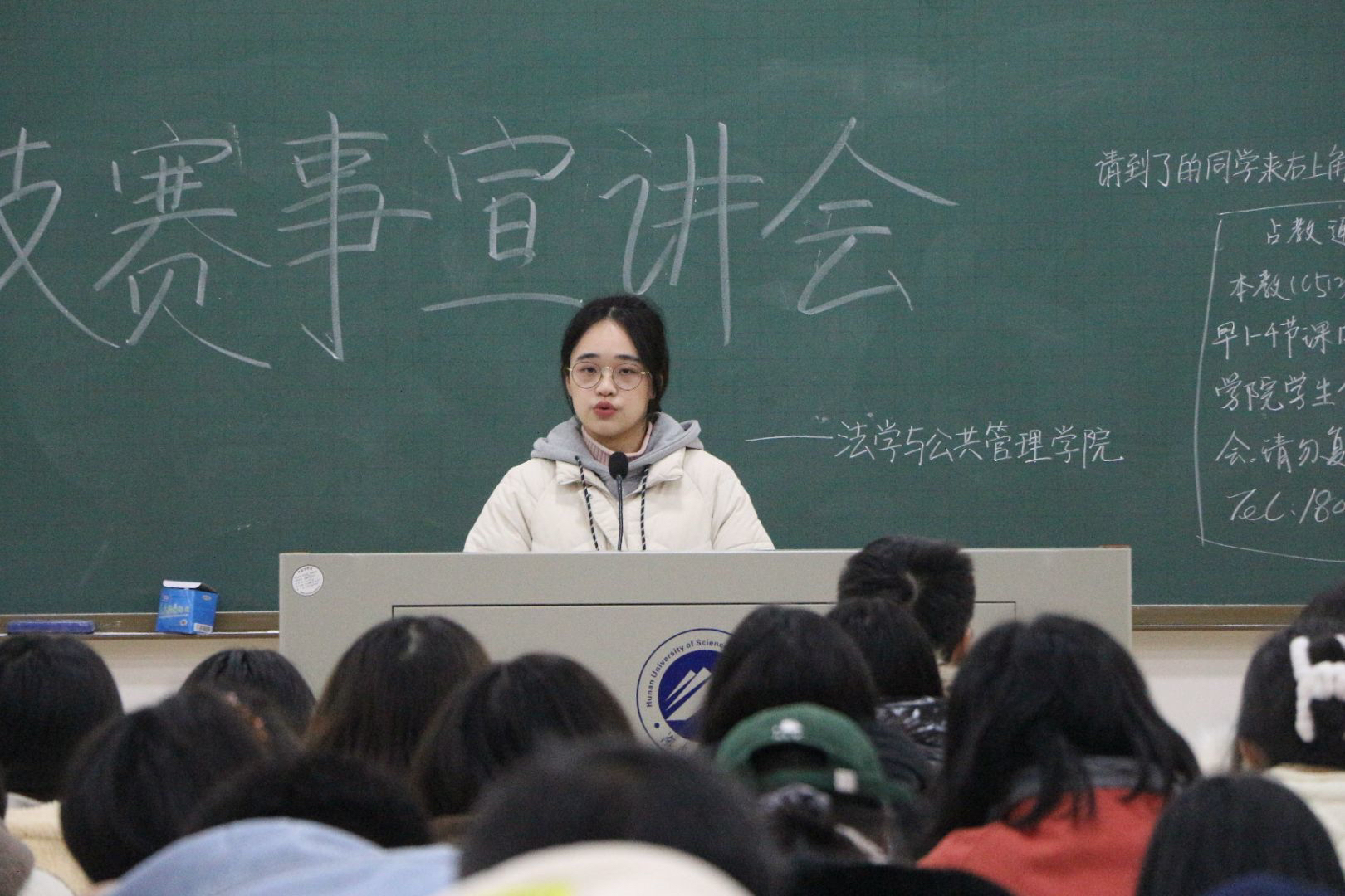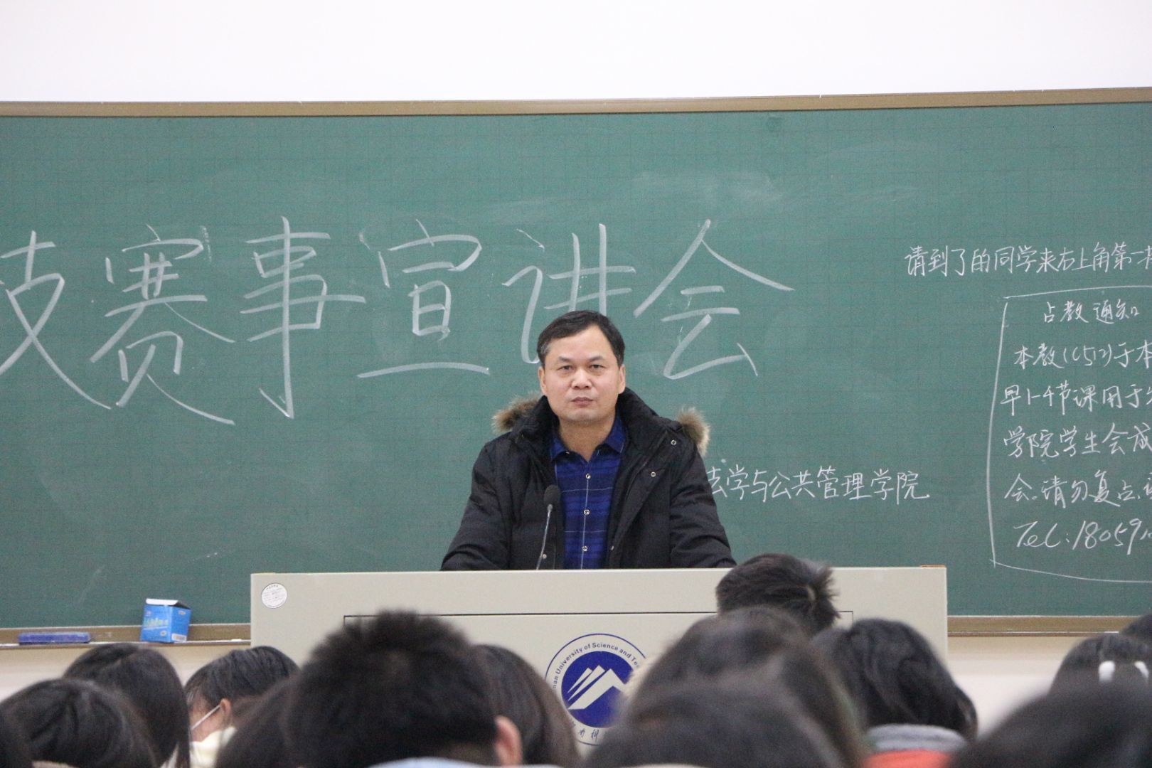 活动伊始,由主持人依次介绍各位到场嘉宾并对他们的到来表示热烈的欢迎。随后,两位科技部宣讲员从赛事内容、赛事特点、项目要求以及开展时间等方面分别对学校现有八大科技赛事进行介绍,让同学们对科技赛事有了更为全面的了解。不仅如此,宣讲员还详细介绍了参加赛事的诸多益处,并向大家推荐适合法管学子参与的赛事,努力激发、调动起同学们参与科技赛事的热情。