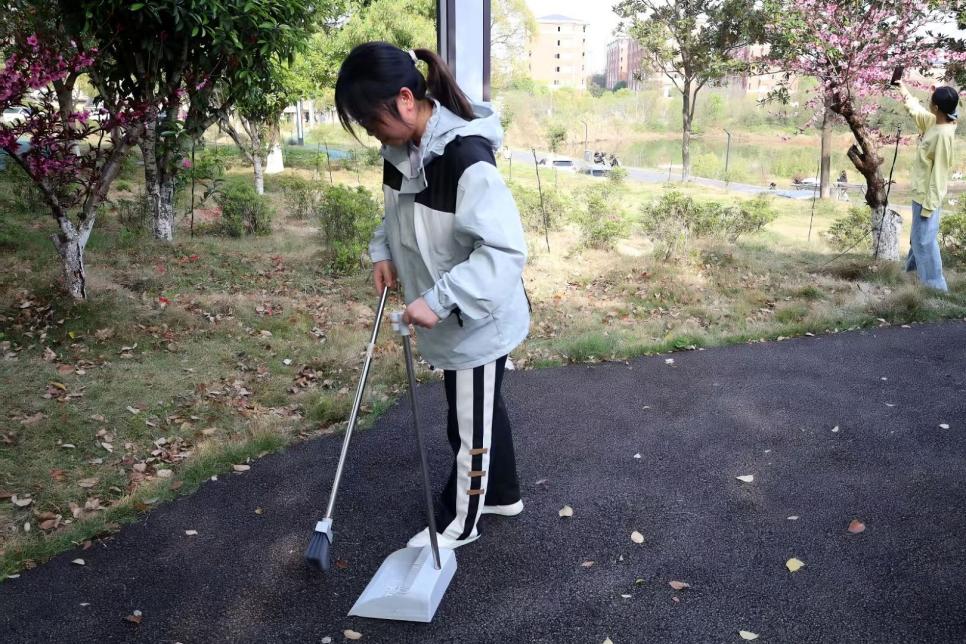 活动现场,同学们在郭志军和各班团的组织下分工协作,井然有序。经过学生的辛勤劳动,锦熙楼周边环境焕然一新,原本散落垃圾的草坪重现整洁,人行道上的落叶被清理一空。大家在此次的劳动教育中体会到劳动的不易,在亲自动手中感受到了劳动的价值。