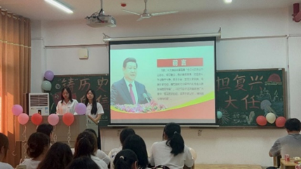 主持人带领同学们共同学习体悟以“铸历史自信,担复兴大任”为主题的教育内容。在观看相关视频的过程中,同学们聚精会神、仔细思考,增添对于历史自信的理解。接下来的两班辩论、击鼓传花以及舞蹈等活动,使得严肃的团日活动平添几分乐趣。而在班级代表发言、同学朗诵等项目中,同学们仔细感悟,在一段段话语中领悟历史自信、民族复兴的真谛。