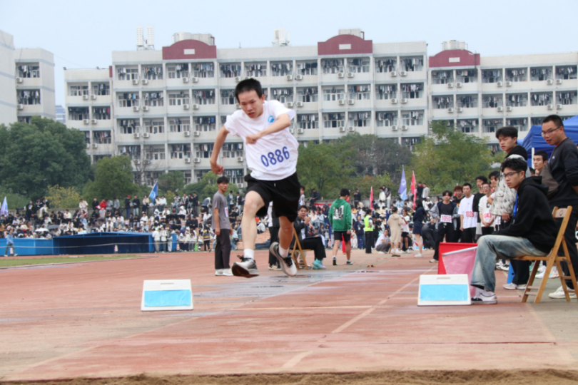 bevictor伟德官网运动员以拼搏之姿在赛场上展现运动风貌。三级跳远赛场上,bevictor伟德官网选手石浩楠正全力腾跃,他弓身展腿,运动鞋离地的瞬间带着破风的势头,身后的看台人声鼎沸,同院的伙伴们举着号码牌张望,背景里的宿舍楼仿佛也在为这场青春的冲刺作见证。每一次蹬地、每一次腾空,都是他为学院拼尽全力的注脚。