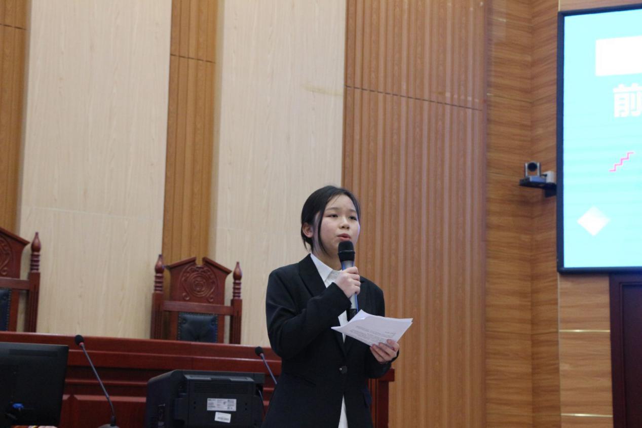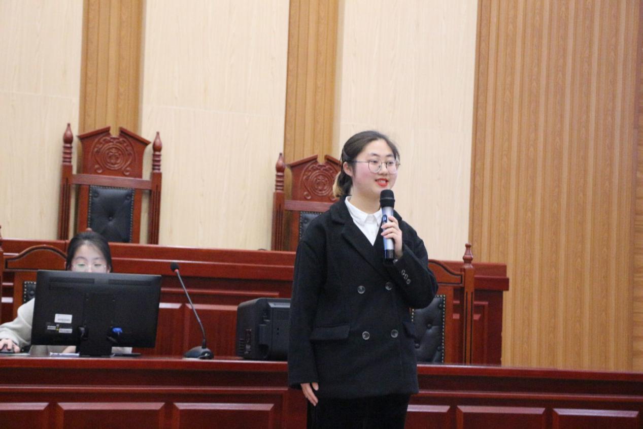 比赛开始后,五位选手依次向评委和同学们展示自己的职业规划。“幽默是生活,严肃是工作”选手廖艺歆以种子成长为花朵的艰难历程为类比点,向同学们展示了她成为一名清廉法官的职业目标,新颖的介绍方式和幽默风趣的谈吐赢得了大家的一致好评。选手吴钰桦将自己比作航海家,探寻着自己的小岛——教师与公务员,阐述对理想的看法与规划,立志做自己灵魂的摆渡人。无独有偶,选手黎宇晴同样梦想成为公务员,为民为国奉献终身,在平凡中孕育不平凡。选手雷洋分享了关于西藏牧民的故事,以严谨流畅的表述、铿锵有力的发言向同学们阐述了她成为少数民族边远地区法律工作者的梦想。选手姜嘉烨则由古言引入,将中国法律图像拆解成麦穗、齿轮等,从中确立了未来学业的安排。