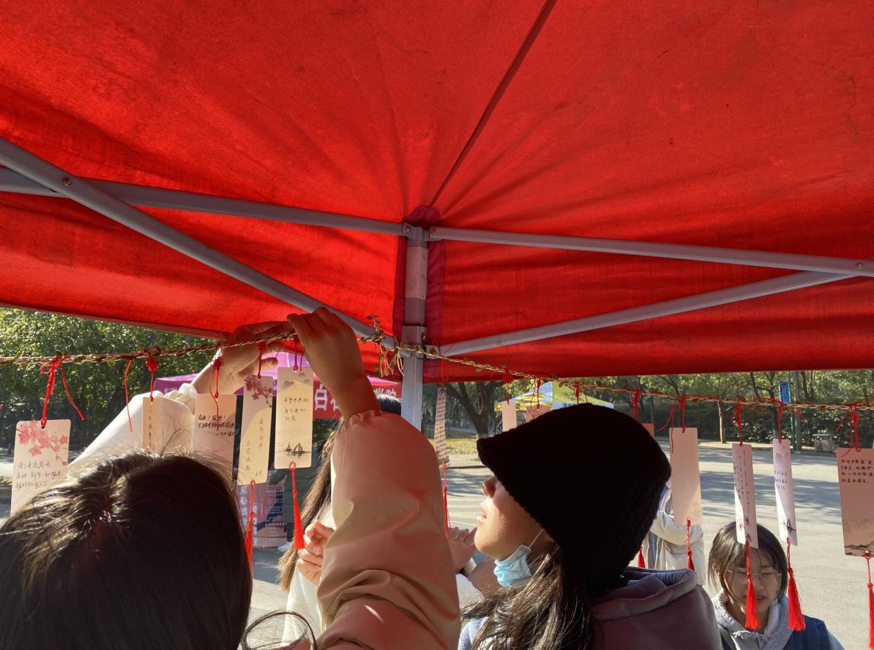本次温暖传递特色活动与心理健康周摆点活动于12月4日10:00-16:00同时在明湖广场举行。参与此次活动的同学围绕本次活动主题,将自己喜欢的、认为带有激励作用的话语写在卡片上,交由心健部委员或亲自将卡片系在摆点帐篷处,以此向他人传递内心的温暖与善意。