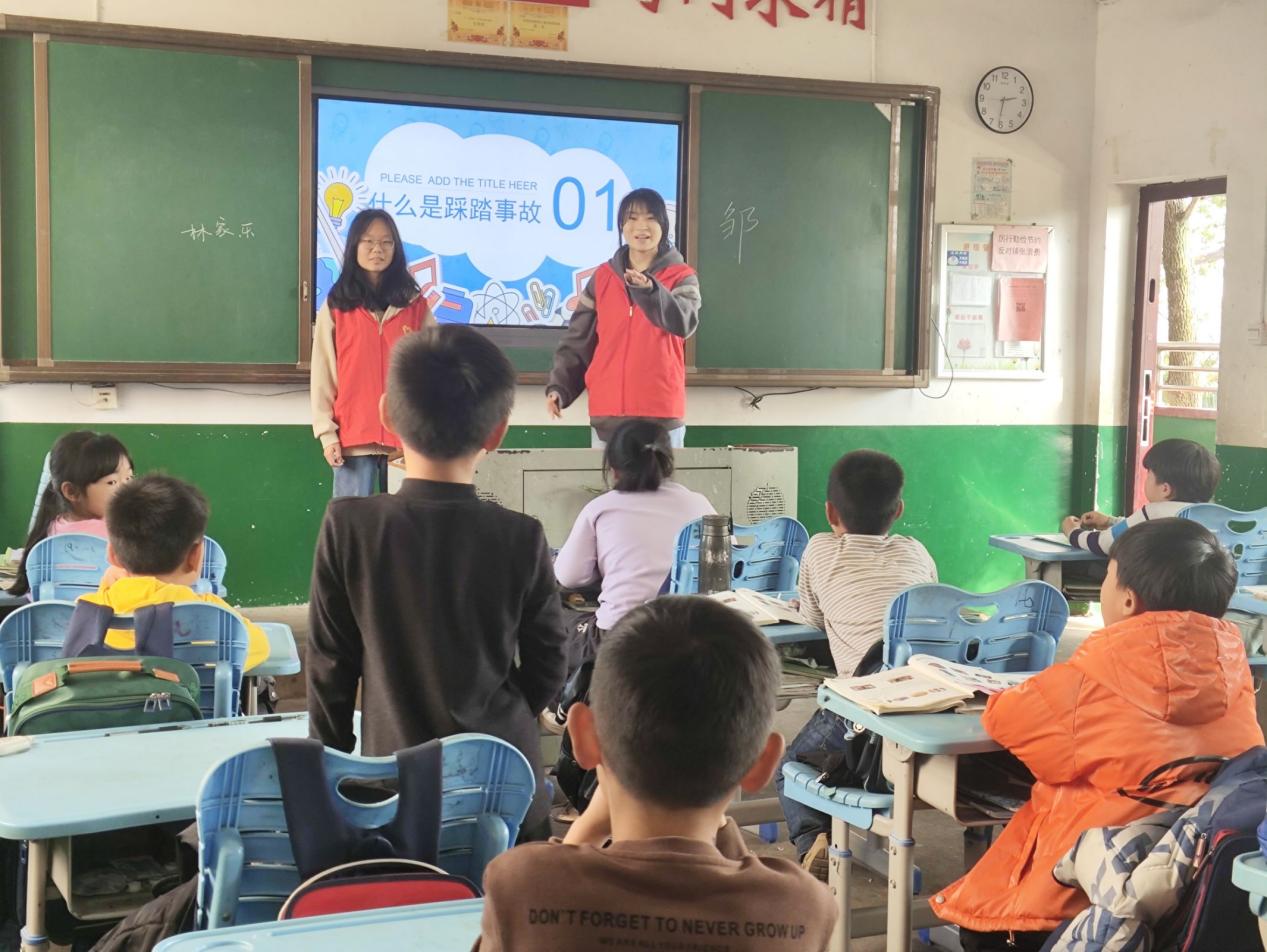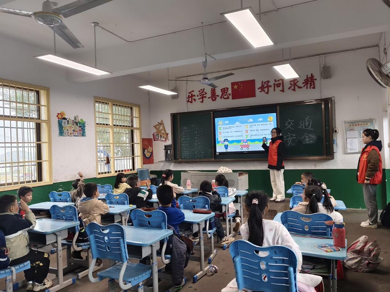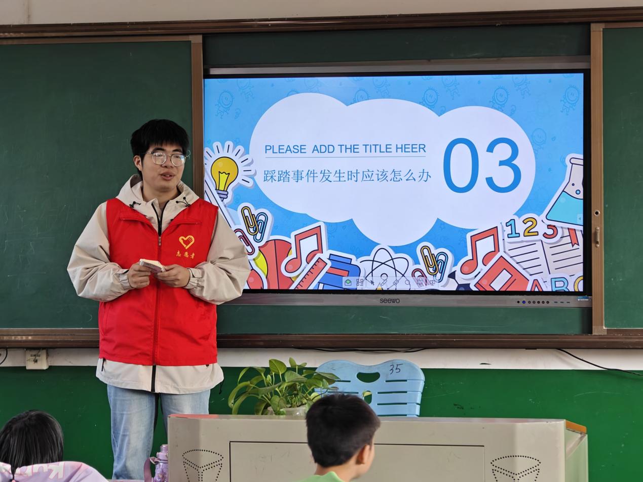 12月3日,志愿团的志愿者们再次前往黄龙学校,这次支教主题是“文明脚步,踏稳安全之路” 。在校园里,人员密集时的踩踏隐患犹如一颗“隐形炸弹”,为筑牢安全防线,志愿者们用生动的语言,提醒小朋友在日常生活中更加注意自己的安全。
