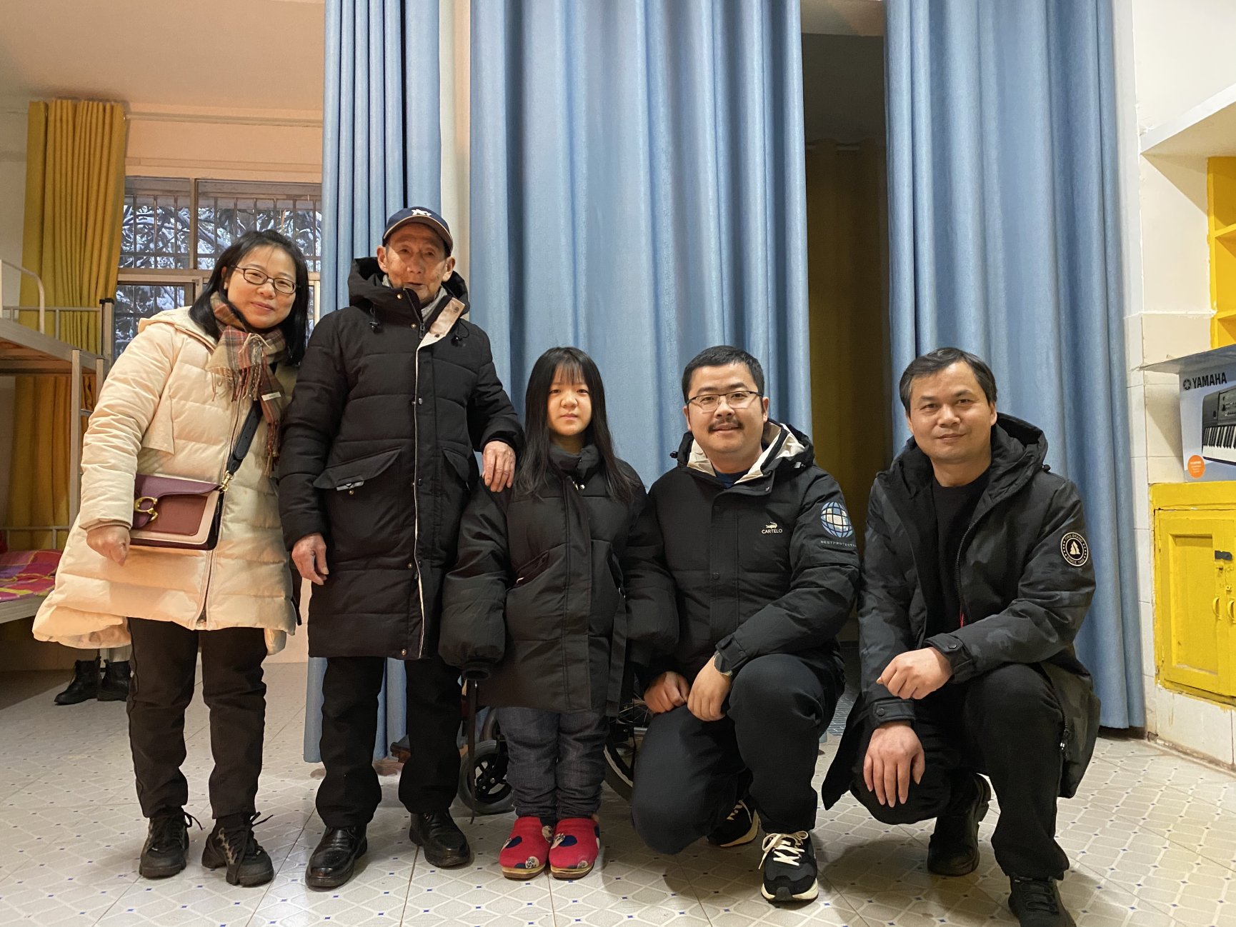 肖盼看到老师们到来,赶紧起身,热情的打招呼。邱书记关心地询问肖盼最近一段时间吃穿住行的细节,还细心提醒,雪天要注意防寒保暖,宿舍空调要利用起来,不要担心用电。叶书记补充道,免除宿舍电费手续已经办理好,安心搞好学习要紧。站在肖盼书桌前,邱书记担心窗前来往的行人会有干扰,贴心地说会找人安装新的窗帘。肖爷爷看到老师们事事为肖盼考虑周全,连声道谢。交谈过后,邱书记拿出准备好的红包,送到肖盼的手中,告诉她:法管学院的老师、同学们都很关心、记挂她,大家自发地为她募捐了一万多元,会分阶段以生活补贴的方式给她,希望这笔钱能够缓解她的经济压力,减少后顾之忧。