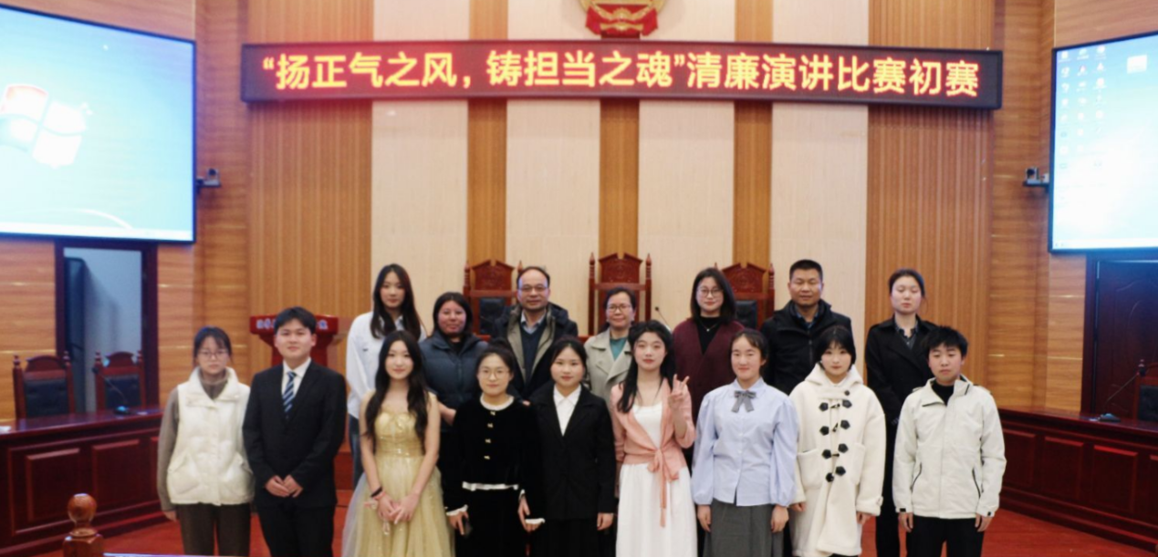 为深入贯彻落实党的二十大精神和习近平总书记关于廉洁文化建设的重要论述,巩固党纪学习教育成果,近日,学院“扬正气之风 铸担当之魂”主题演讲比赛在立言楼模拟法庭举行。院党委副书记范军豪、喻军教授、王慧慧副教授、学工办主任郭志军、院团委书记李珍妮出席会议并担任比赛评委。