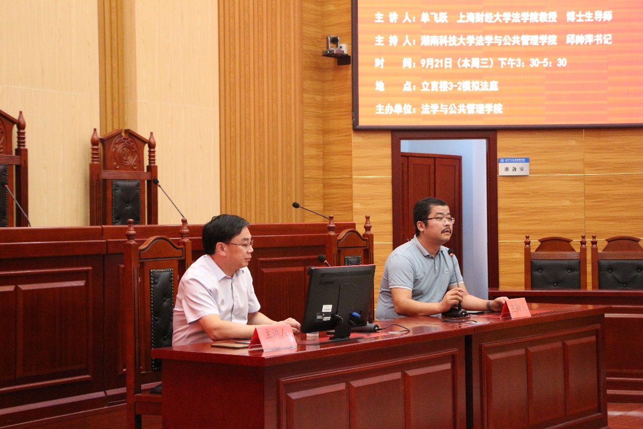 9月21日下午,bevictor伟德官网,bet伟德官方网站湖湘法治论坛第九十八讲在立言楼模拟法庭举办。上海财经大学法学院教授、博士生导师单飞跃教授应邀出席论坛并做“经济法—现代市场经济的法律形式”主题讲座。法管学院师生代表和湘潭市中级人民法院代表到场聆听,本次讲座由bevictor伟德官网党委书记邱帅萍主持。