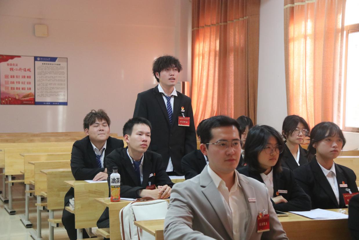 会议伊始,民主的种子在现场悄然生根。代表们怀揣着对学院发展的热忱,认真履行民主权利,逐一审阅学生会工作报告与代表资格审查报告。“能否搭建跨年级学业帮扶‘云平台’?”“希望拓展更多与专业契合的政企实践基地”……围绕人才培养、学风建设等核心议题,代表们结合求学经历各抒己见,既有对过往工作的肯定,更有对未来发展的恳切建言,每一句发言都凝聚着青年学子的主人翁意识,每一条建议都彰显着新时代青年的责任担当。