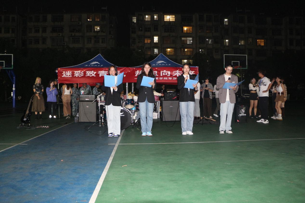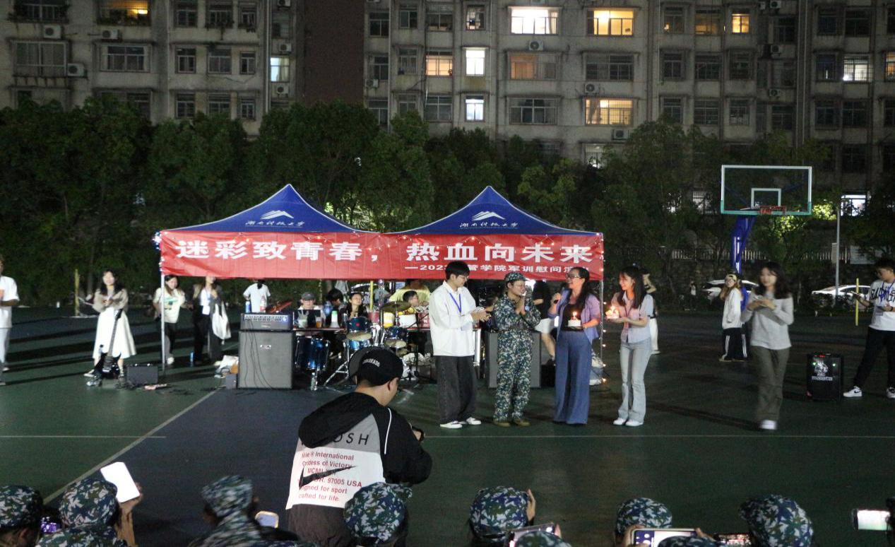 金秋九月,迷彩绚烂,2023级的新生正在接受着军训带来的重重考验,为舒缓新生在军训中紧张焦虑的情绪,鼓舞新生在军训中锻炼身体与精神的新士气,bevictor伟德官网于9月26日19:00在五区篮球场举行了军训慰问演出活动,bevictor伟德官网党委书记郑海祥老师、党委副书记范军豪出席本次活动,辅导员郭志军老师、彭钰会老师以及其他任课老师等共同参加此次活动。2023级新生肖广翔、曹琼宇、谌婷、姜金育担任本次活动的主持人,他们出色的控场能力使本次军训慰问演出活动获得圆满成功。