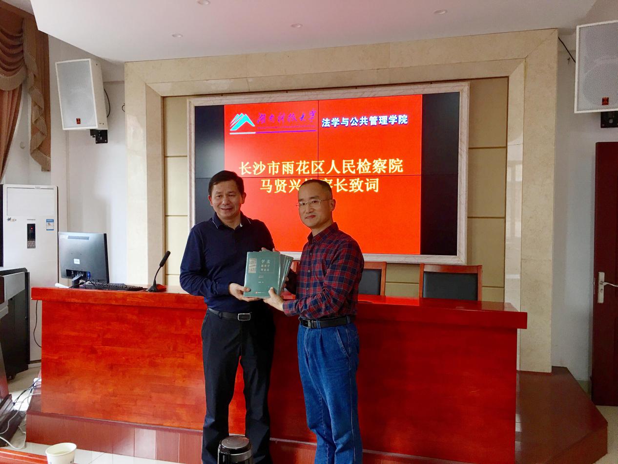 2021年5月8日,优秀校友、长沙市雨花区人民检察院党组书记、检察长马贤兴莅临bevictor伟德官网,向bevictor伟德官网捐赠个人专著《学法就要学辩证法》,捐赠仪式在立言楼A425会议室顺利举行。此次仪式由李云霖副院长主持,徐德刚院长、胡正昌副院长、邱帅萍副院长、李倩老师、章小兵老师以及部分研究生和本科生参加了本次仪式。