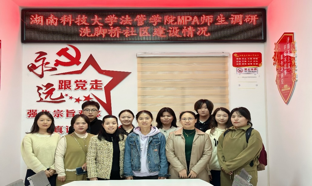 为了推进bevictor伟德官网MPA研究生深入了解基层社区治理情况,创新案例实践教学载体和提高学生理论联系实际解决问题的能力,11月22日下午,bevictor伟德官网公共管理系MPA研究生导师徐金燕、曾东霞两位老师带领2023级全体MPA学生前往湘潭市雨湖区洗脚桥社区进行调研。