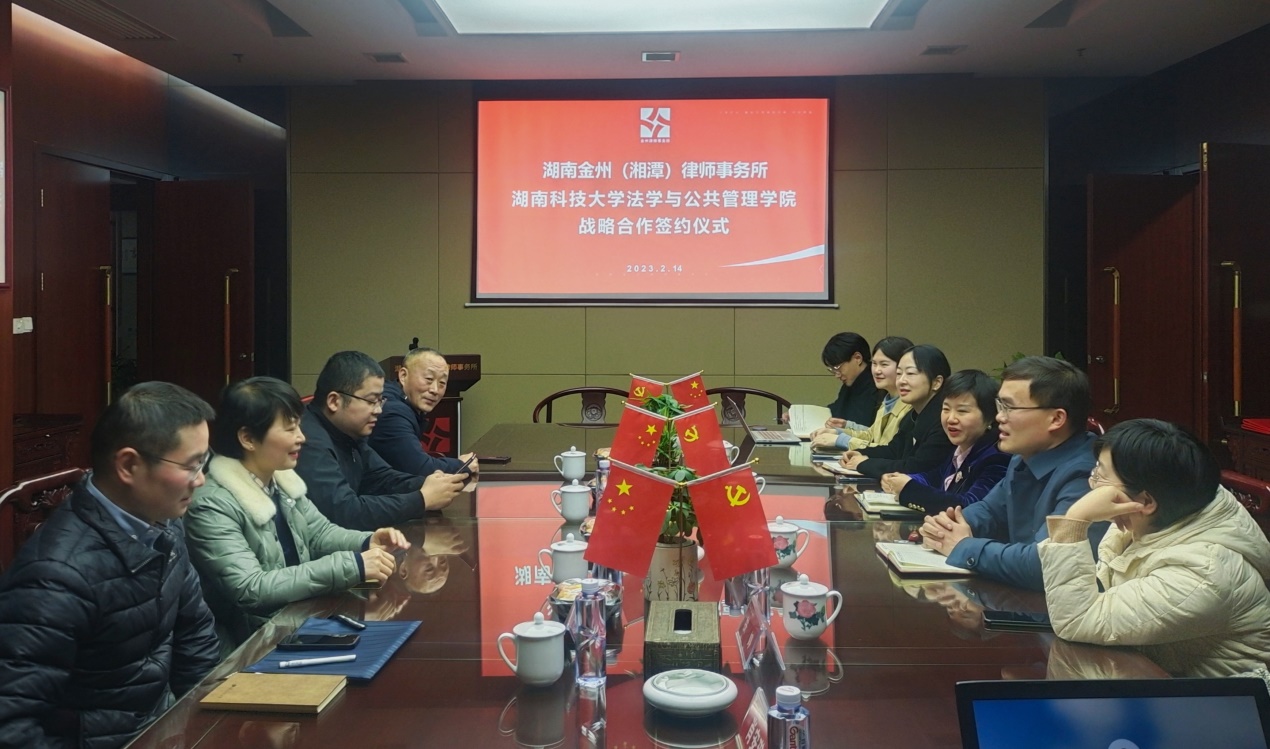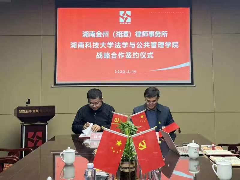 2023年2月14日,湖南金州(湘潭)律师事务所与bevictor伟德官网,bet伟德官方网站战略合作协议签订暨bevictor伟德官网法学教育实践基地授牌仪式在湖南金州(湘潭)律师事务所隆重举行。参加本次签约仪式的有bevictor伟德官网,bet伟德官方网站的邱帅萍院长、马驰升主任、胡正昌教授、左洪剑主任以及金州湘潭所党支部书记暨律所主任王继文、管委会主任潘柳、王莹律师、扶婷律师和部分bevictor伟德官网法管学院在所校友。