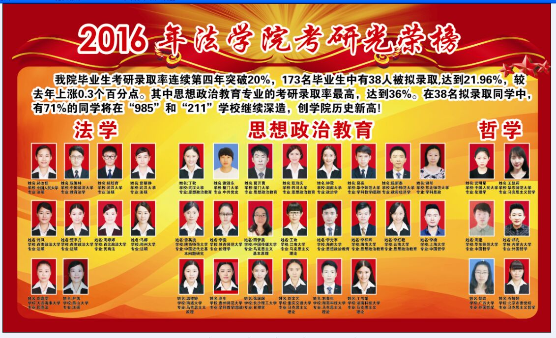 2016年法学院考研率达22%七成同学被“985”“211”高校录取
