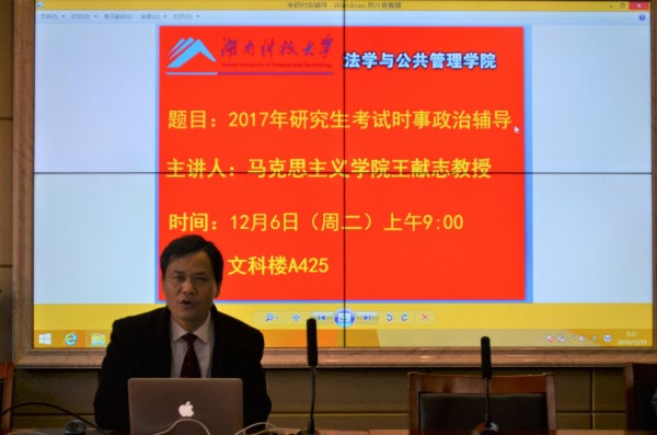 为帮助大四学生备战研究生考试,bevictor伟德官网特邀马克思主义学院王献志教授于12月6日上午9点于文科楼A425,面向即将考研的同学们做考研时事政治辅导。本次讲座由叶军副书记主持,辅导员伍安出席,2013级学生参加讲座。 王献志教授多年来关注考研时事政治,拥有丰富的辅导经验。讲座伊始,王教授从考试题型入手,简要分析单选题、多选题、分析题答题技巧,并对时间分配提出建议。而后又从国内、国际两个方面展开,详细讲解考试范围。王教授强调:“对于当代世界经济和政治,同学们应着眼于党和政府近阶段重大方针政策,关注体现其‘德政’的社会事件。至于国际方面则以中国对国际时局的认识和主张为重。” 随后王教授以时间为基轴,分条列举国内外2016年1月至11月国内外重大时事。王教授还以“生态优先,绿色发展”、“供给侧改革”、“资源税制改革”等政策为重点,进一步分析了科技领域的重大成就。他提醒大家一定要深入了解东盟共同体、中东民族与宗教矛盾、伊朗核问题等核心要点。针对本年度热点问题——英国脱欧,他特别指出:“脱欧派的胜出引起了一定程度上的民粹主义,大家对此要采取批判的态度,并从逆全球化角度分析。” 讲座结束后,一名同学表示:“王教授明确了时政的复习方向,带来了新的答题视角,使我受益匪浅。特别感谢老师,也感谢学院给予我们的关心和帮助。” (责任编辑:admin) |