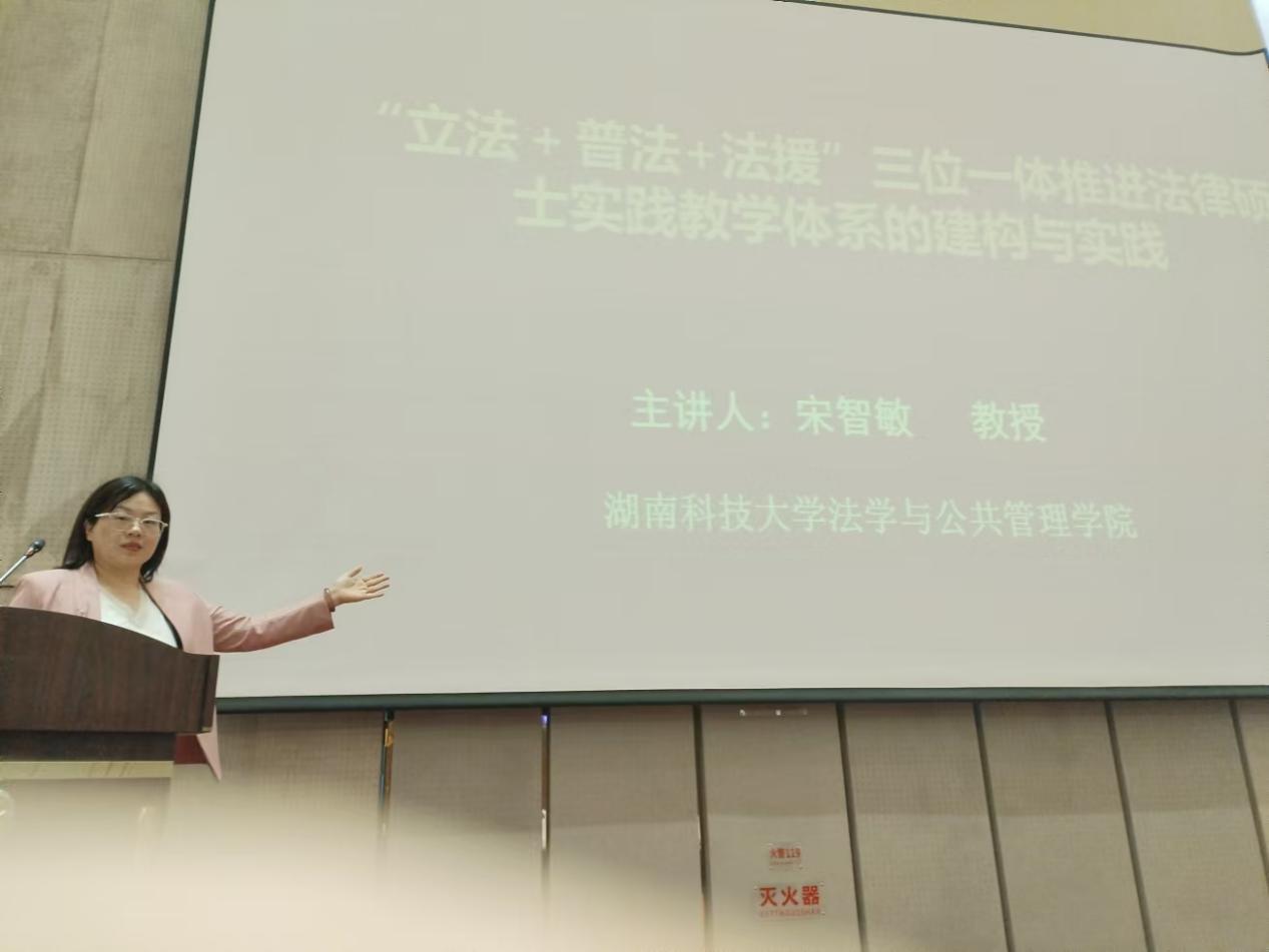 本次会议的主题为“完善以实践为导向的法学院校教育培养机制,推进新时代法律专业研究生教育改革与发展”,旨在大力提升法律专业学位研究生教育教学水平。会上,副院长宋智敏教授做了题为《“立法+普法+法援”一体推进法律硕士实践教学体系的建构》的主旨发言。她认为,法律硕士培养要解决的主要问题有重“知识教育”轻“人格养成”、重“灌输教育”轻“自主创新”、重“理论教学”轻“实践体验”、重“封闭办学”轻“开放培养”。bevictor伟德官网注重“立法+普法+法援”的法律硕士实践教学体系的建构,并取得了显著的成效:通过立法实践培育了学生的整体法治观;通过法治宣讲(传)培育了学生的社会责任感;通过法律援助培养了学生的公平正义之心。