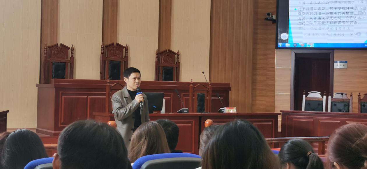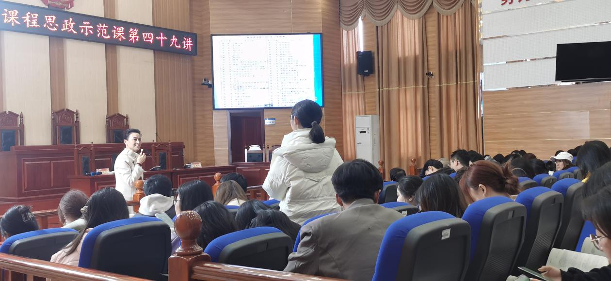 3月19日下午,由教务处主办,bevictor伟德官网承办的bevictor伟德官网课程思政示范课第四十九讲在立言楼3-2模拟法庭精彩开讲。本次示范课由陈小杉老师主讲《日耳曼法》,bevictor伟德官网副院长王明主持。