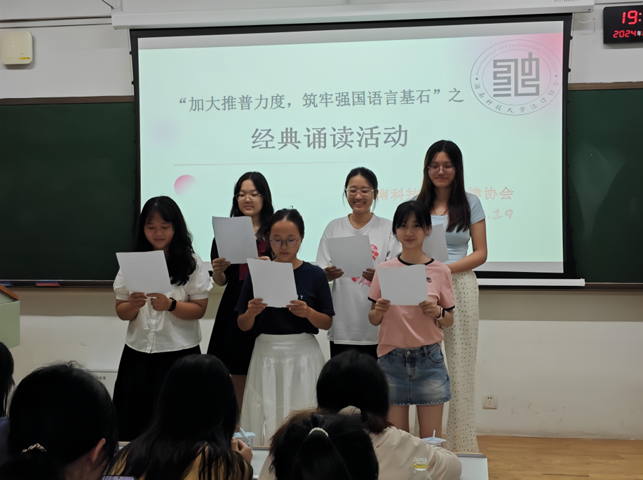 本次活动围绕“加大推普力度,筑牢强国语言基石”主题,采取多种形式,将海报横幅、经典诵读等线下宣传与学院公众号推文等线上推广相结合,内容充分贴近师生的现实生活。通过一系列活动的开展,既提高了广大师生参与推广普通话的积极性与热情,又营造了学习使用国家通用语言文字的浓厚氛围。