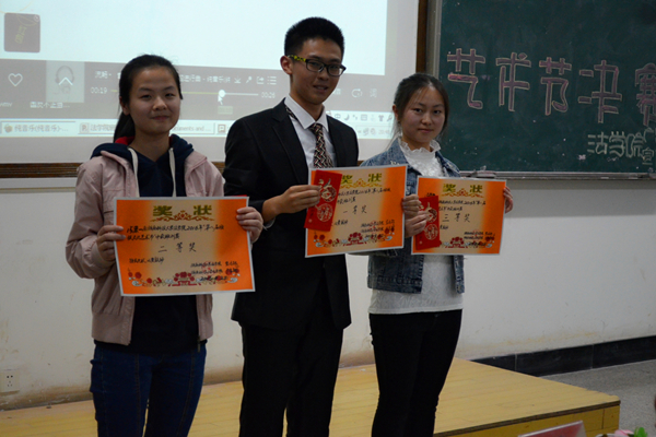 ——bevictor伟德官网第八届班级文化艺术节顺利闭幕    4月22日晚7点,bevictor伟德官网第八届班级文化艺术节决赛在八教3-3教室隆重举行,出席活动的嘉宾有学工办主任朱荣老师、辅导员伍安老师、广告部前部长林泓以及团委学生会主席团和各部部长。2015级全体学生到场参与此次比赛。 大赛开始,一段激情澎湃的宣传视频拉开决赛帷幕。大一生活的点点滴滴,历历在目,所有过往以班刊为载体,述说永不磨灭的同学情谊。 决赛分为班刊班徽的现场展示和拉票两个环节。班刊方面,无论是形式、内容亦或是排版设计,都打破了传统、独具匠心。法学四班的刊物采用了“双正面”的设计,杨沛霆同学解说道“第一封面以淡绿色为底,蕴含着低调的班风,第二封面色彩明快,象征着班级分工明确、积极拼搏的精神”;思政教育一班则是将自己班级的集体特色照片制作成日历,用四个富于质感的金属圆环穿接而成,颇具青春气息;法学一班则带来极具创意的卷轴式班刊——《蒹葭》,彰显了锐意创新、开拓进取的班级风貌,赢得了全场观众热烈的掌声,将全场气氛推向高潮。班徽方面,哲学班“以水墨画为主题,寓意着超脱、智慧的哲学思维。同时,徽章中心大写的‘P’代表着哲学的英文首字母,给人耳目一新之感”。拉票环节更是高潮迭起,思政二班改编了《北京东路的日子》;思政一班制作了视频《暴走吧!思一》;法学三班全体男生带来了笑料十足的小品《军训两三事》。 最后,法学一班喜将班刊制作、班徽设计第一名以及最佳解说等三大奖项收入囊中,思政一班和哲学班分别获班刊制作二、三等奖,法学二班和法学四班获班得班徽设计二、三等奖。思政一班获最佳编辑奖,哲学班荣获最佳创意奖。 “此次活动带给我们前所未有的惊喜,这是每个班集体智慧的凝结。没有大家做不到,只有我们想不到。希望大家把这么宝贝的作品留在学院,成为我们校友作品的一部分,今后大家回母校唤起共同的青春记忆。”比赛在朱荣老师的寄语中画上了圆满的句号。 (责任编辑:admin) |