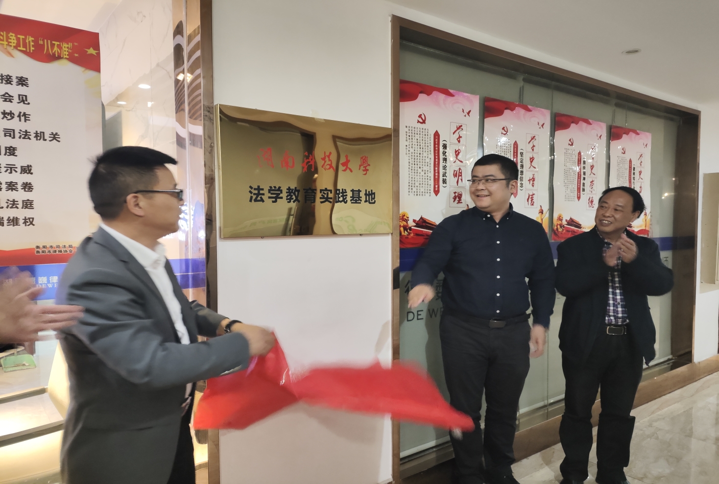 为进一步加强学校与校友企业之间的沟通联系、学生对社会的了解认识和锻炼实践,促进学生更好地成长成才,学院与校友企业湖南德巍律师事务所深入探讨、合作共商建立了法学教育实习基地,举行了揭牌仪式。
