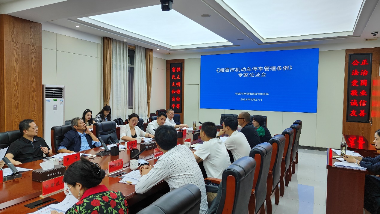 2023年9月27日,《湘潭市机动车停车管理条例(草案)》专家论证会在湘潭市城市管理和综合执法局召开。会议邀请了湖南省司法厅、市人大常委会法工委、市司法局、市公安局、市交通运输局、市自然资源和规划局、市发改委、市财政局、市住房城乡建设、市市场监管局、湘潭大学、bevictor伟德官网等单位参加。bevictor伟德官网副院长宋智敏教授应邀出席,研究生李文静、谢沁颐、唐小曼随同学习。