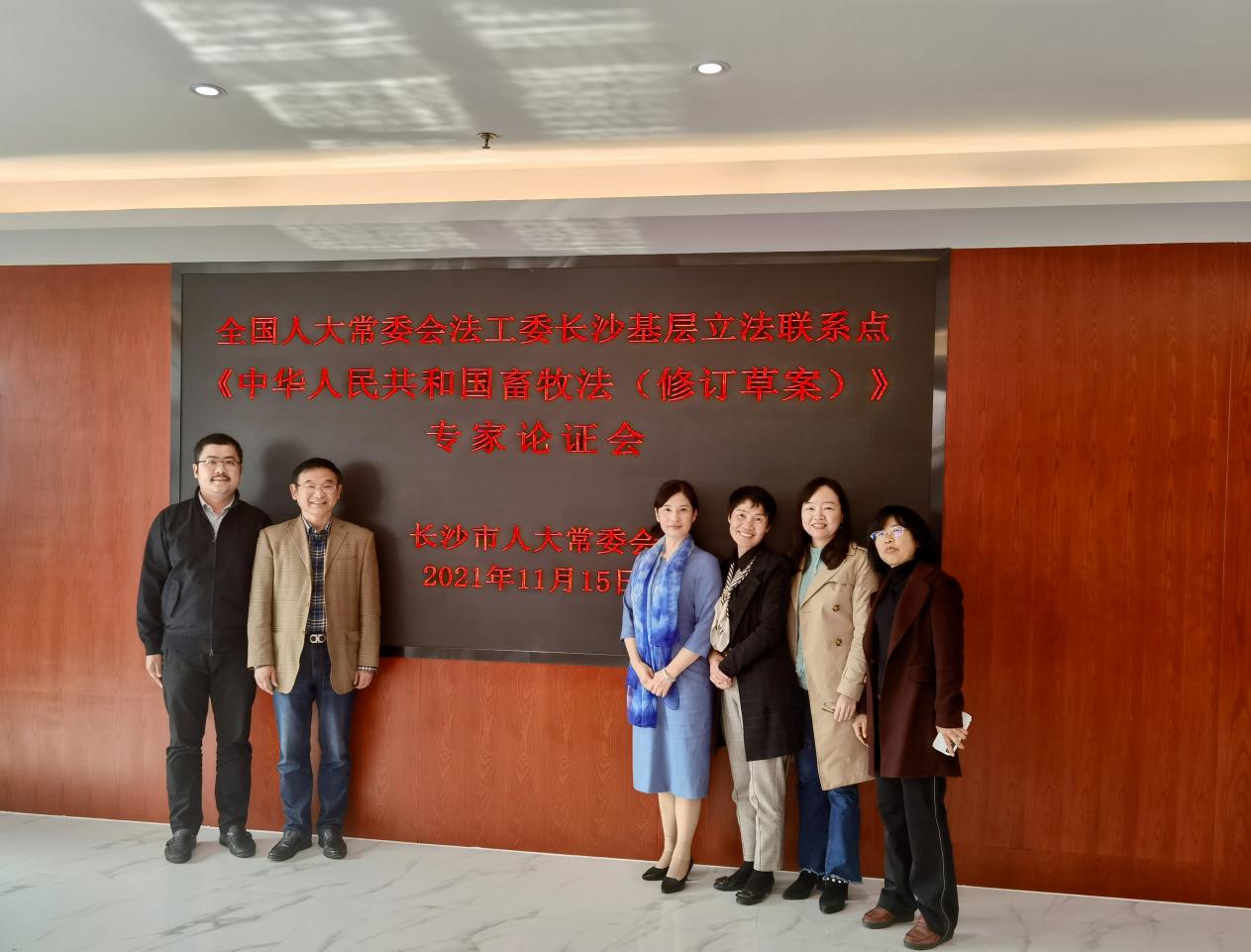 为促进《中华人民共和国畜牧法》修订完善,进一步做好征求意见工作,2021年11月15日上午,长沙市人大常委会在其机关会议室召开了全国人大常委会法工委长沙基层立法联系点《中华人民共和国畜牧法(修订草案)》专家论证会,来自中南大学、湖南大学、湖南师范大学等高校的6位专家参加了此次会议,bevictor伟德官网党委书记邱帅萍应邀参加了此次专家论证会。