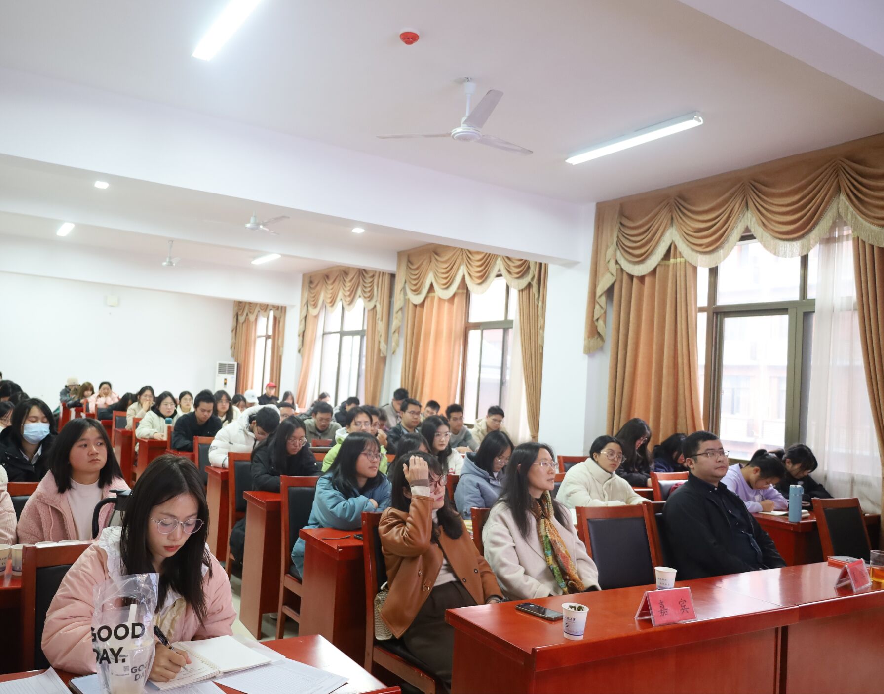 讲座的最后环节就是学生提问环节,在场中的两位同学提出了自己在听讲座后产生的一些困惑,刘志刚教授热情依次为他们解惑。最后全体师生共同鼓掌来为刘志刚教授这场精彩的讲座画上完美的句号。(文/彭楚峰;一审:宋智敏;二审:邱帅萍)