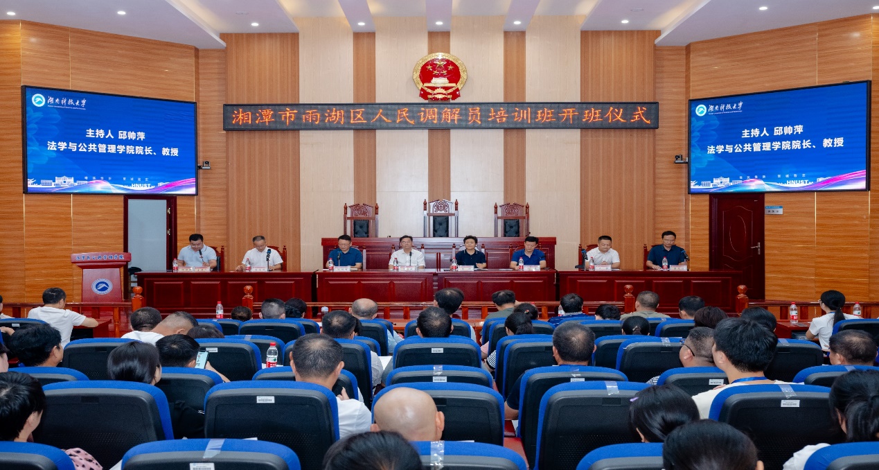为坚持和发展新时代“枫桥经验”,进一步提高调解员调解、预防和化解各类矛盾纠纷的能力,充分发挥调解员化解矛盾纠纷“第一道防线”作用,雨湖区人民法院联合我校bevictor伟德官网对雨湖区辖区内人民调解员代表以及法院专职特邀调解员开展专题培训。培训班于9月5日上午在我校立言楼3-2模拟法庭正式开班,法院专职特邀调解员、各乡镇街社区人民调解员、各行业调解组织调解员代表共计130余人参加开班仪式。我校党委委员、副校长李琳,雨湖区人民法院党组书记、院长杨立,湘潭市中级人民法院审判委员会专职委员李明智出席开班仪式并分别致辞,仪式由bevictor伟德官网院长邱帅萍主持。