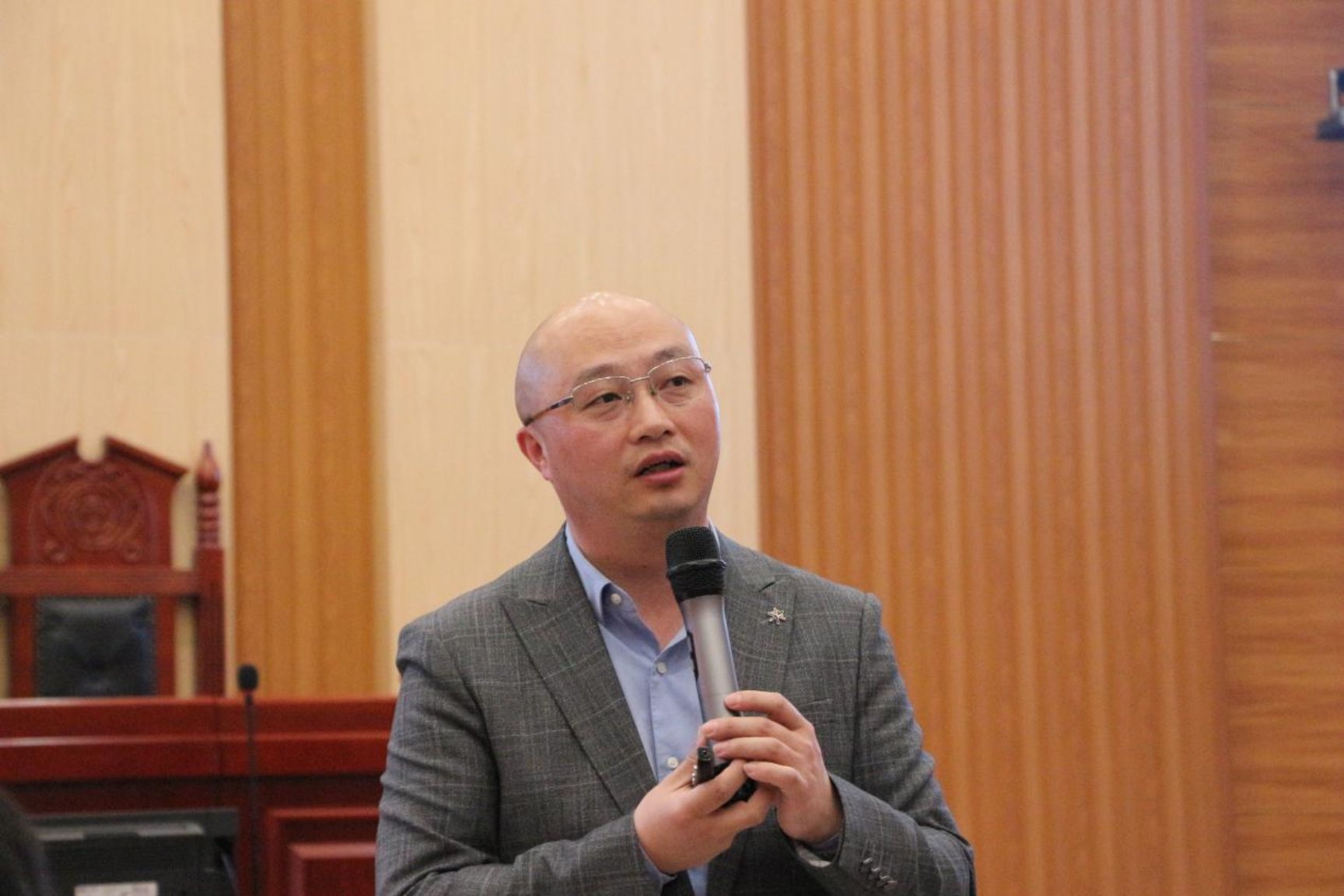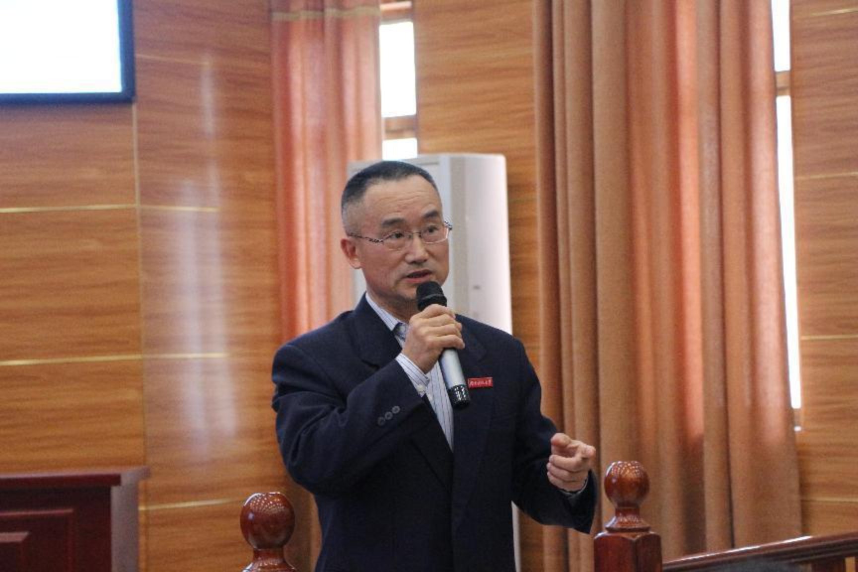 ▲学院副院长王明主持讲座