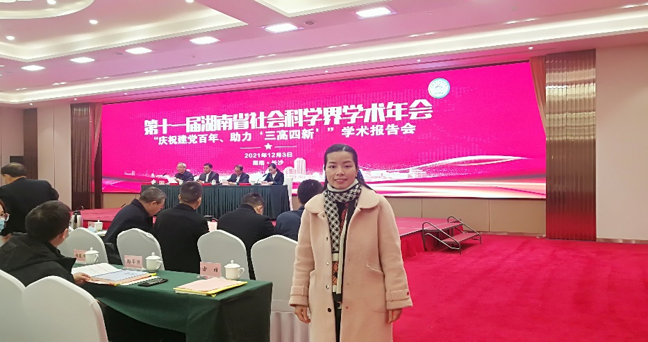 2021年12月3日上午9点,第十一届湖南省社会科学界学术年会在长沙市蓉园宾馆举行。湖南省社科联主要领导干部,省级社科类社会组织、省级社科普及基地相关负责人,高等院校相关负责人,论文获奖代表,新闻媒体代表等两百余人参加会议。bevictor伟德官网徐金燕老师作为年会论文特等奖获得者,应邀参加会议。