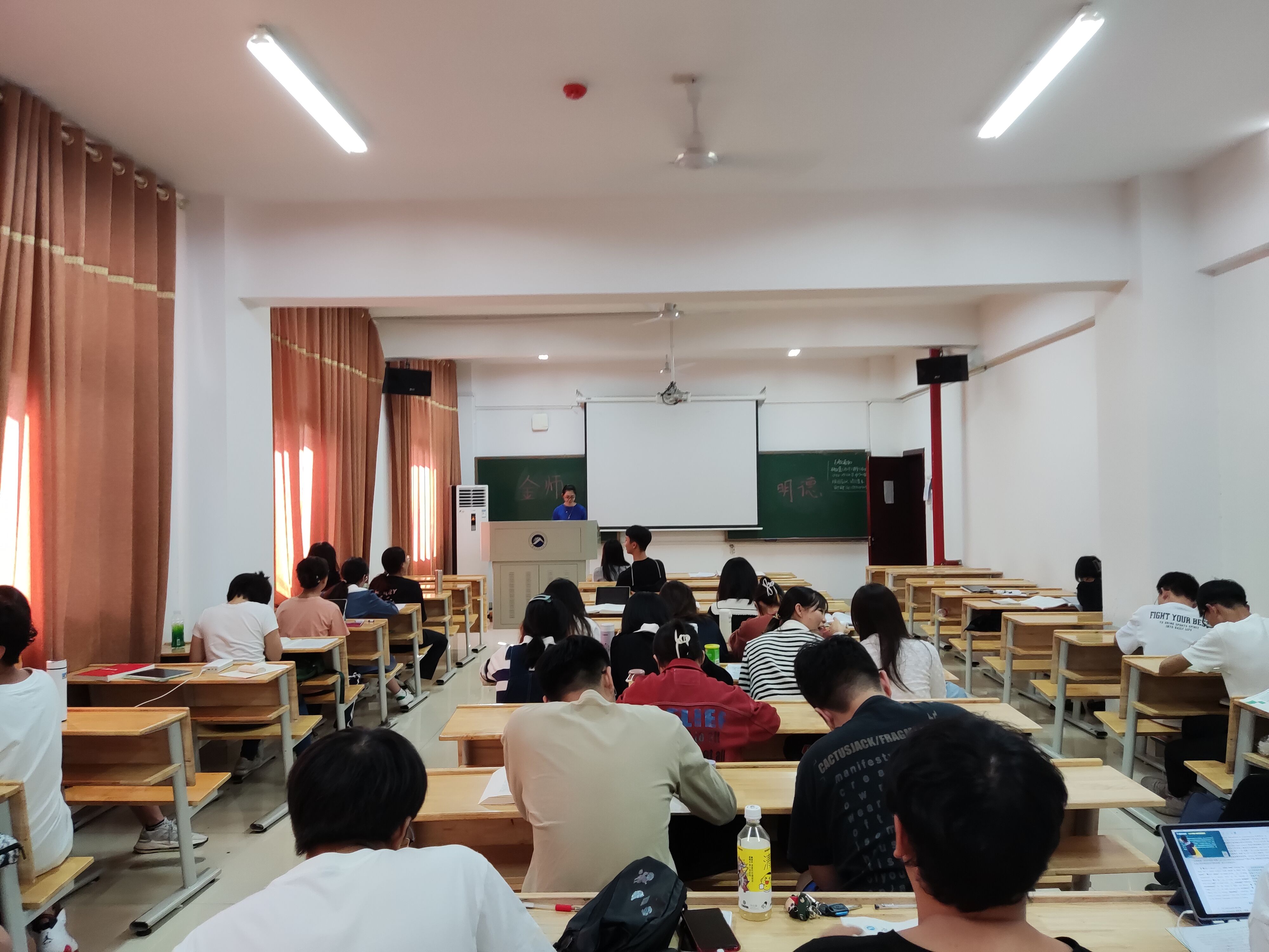 据学校要求,本学期的十、十一周为教学礼拜周,该活动的开展对于展示教师风采、提高教学质量、促进师生交流具有重大意义。“金师·明德”主题班会响应教学礼拜周的开展,引导学生深入学习党的二十大精神,号召学生做到尊师重教、乐学善学,进一步推进“三全育人”工作。班会上同学们聚精会神地听取老师与学生代表发言,并围绕如何“明德”进行了热烈学习讨论。各班班主任耐心地给各班同学在近期学习生活上的困惑与问题给予了解答与帮助,对展现教师人文关怀、促进师生关系意义重大。
