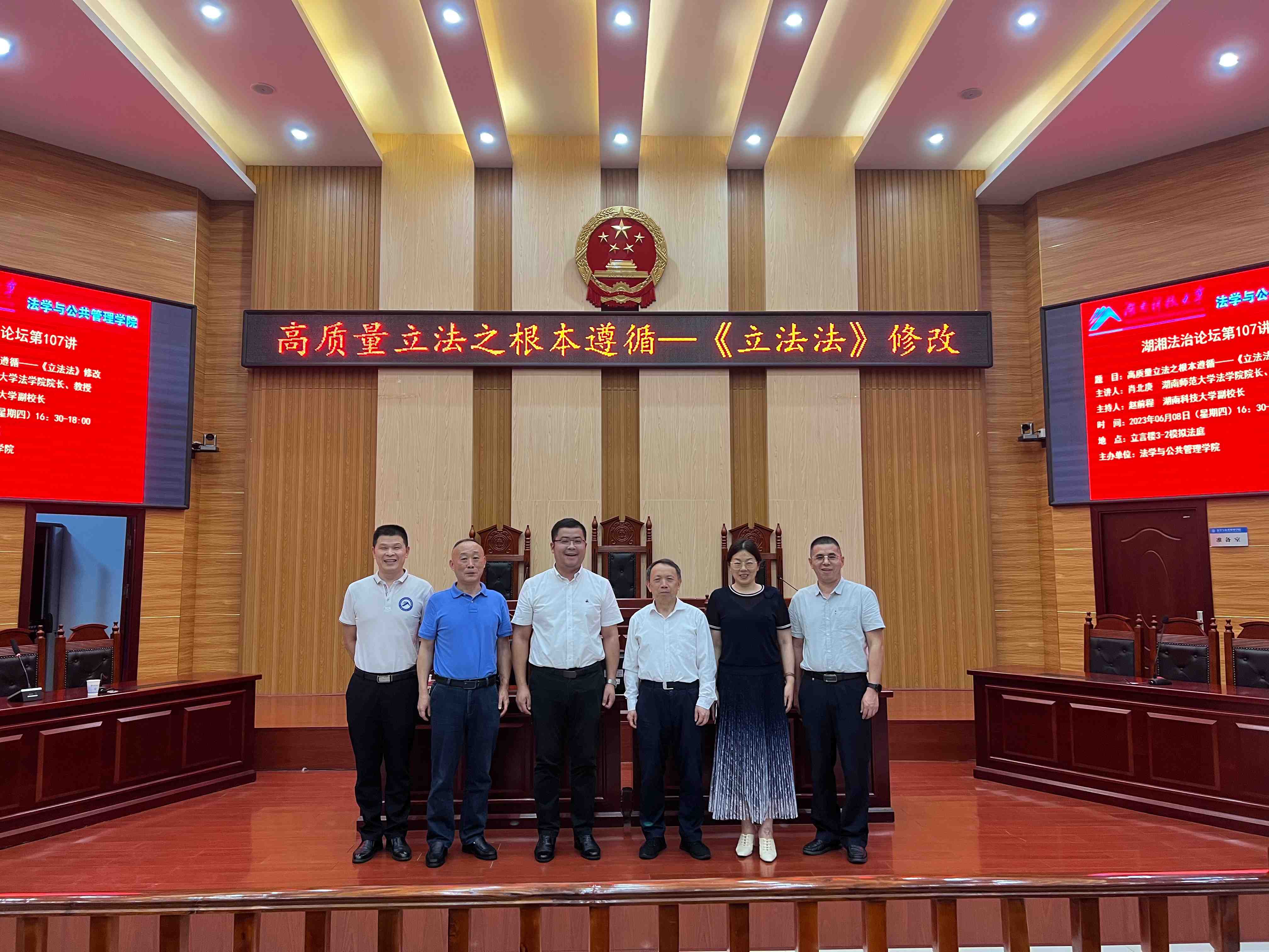 6月8日下午,第十四届全国人大代表、湖南师范大学法学院院长、博士生导师肖北庚教授应邀在立言楼模拟法庭开展《高质量立法之根本遵循-<立法法>修改》主题讲座。出席本次讲座的有bevictor伟德官网赵前程副校长、bevictor伟德官网院长邱帅萍教授、副院长宋智敏教授、胡正昌教授等院领导师生近200人参加了讲座。本次讲座由赵前程副校长担任主持人,胡正昌教授担任与谈人。