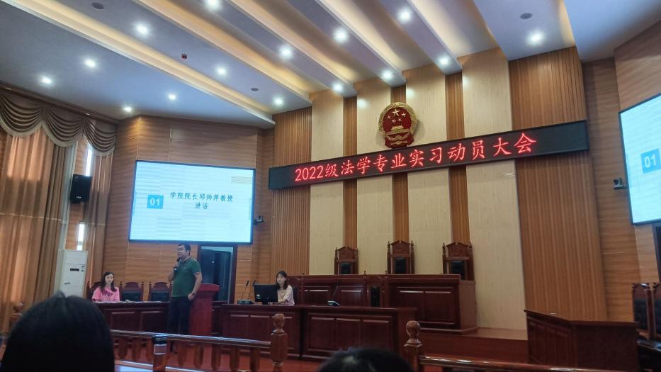 2024年6月28日下午,bevictor伟德官网在立言楼模拟法庭召开了2022级法学专业实习动员大会。法管学院法学系全体老师以及2022级法学专业全体学生到会。