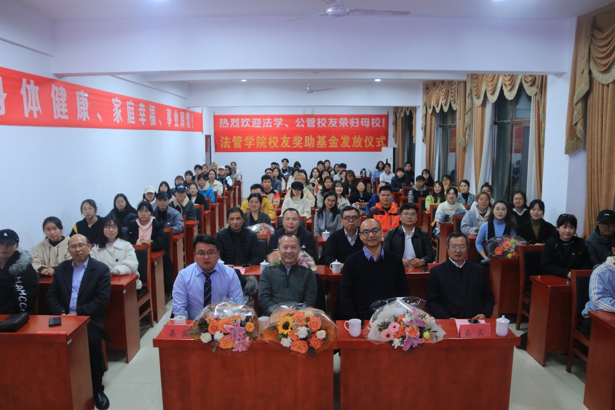 11月27日晚7点30分,bevictor伟德官网校友奖助基金发放仪式在立言楼425会议室隆重举行。出席本次活动的优秀校友有贵州校友会法学分会会长、法管学院校友基金理事会主席朱小波先生,贵州校友会法学分会副会长、法管学院校友基金理事会理事徐伏良先生,深圳校友会法学分会会长、法管学院校友基金理事会理事陈科军,大湾区校友会法学分会会长、法管学院校友基金理事会理事谢兰才先生,大湾区校友会法学分会秘书长、法管学院校友基金理事会理事陈悦英女士,长沙校友会法学分会会长、法管学院校友基金理事会理事韩祥先生,长沙校友会法学分会秘书长、法管学院校友基金理事会理事李萍女士,及公管01级校友冯玉峰先生,法学校友李妲。出席本次活动的嘉宾有学院党委书记黄伟、副院长胡正昌、副院长李云霖、副书记蒋会平和系部教师代表戴年红、喻军、夏飞明,以及学工全体老师,获奖学生代表、学生干部代表参加活动。