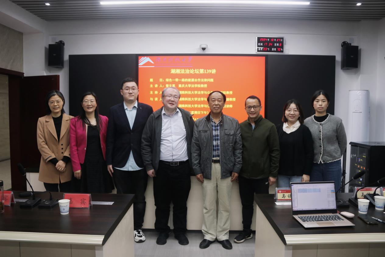 2024年10月26日,重庆大学法学院曾文革教授应邀在立言楼A303作《“绿色一带一路的能源合作法律问题》的学术讲座。讲座由黄素梅教授主持,湘潭大学法学院肖峰教授、bevictor伟德官网李倩副教授、谢潇博士与谈,近100名师生到场学习。