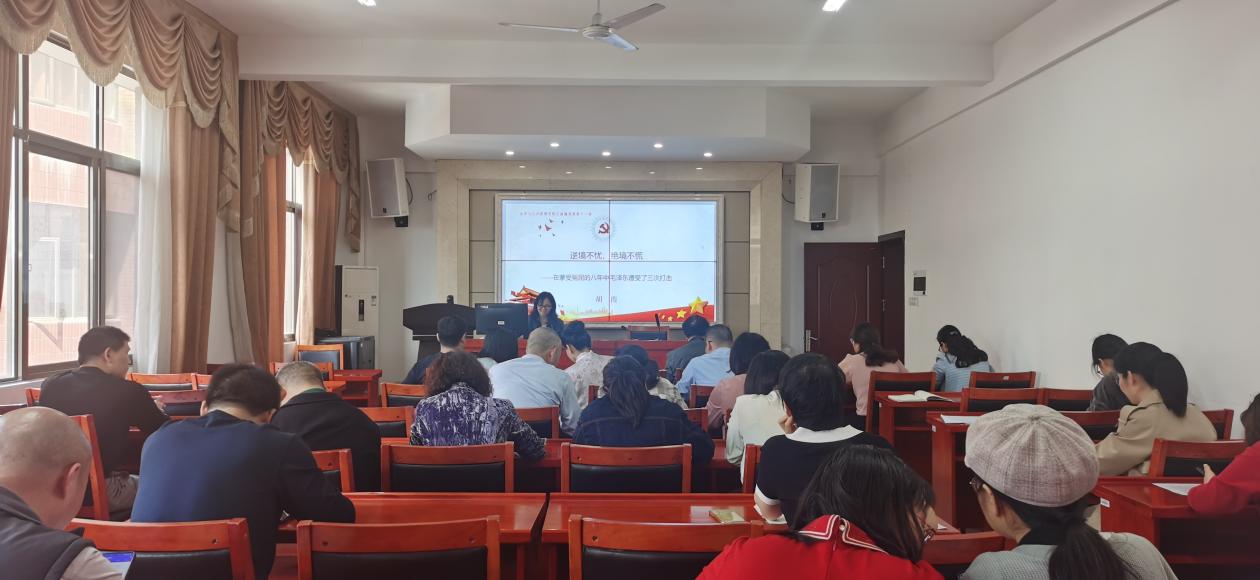 4月19日下午,bevictor伟德官网全体教职工党员于立言楼A425开展以“逆境不忧,绝境不慌——蒙受冤屈八年中的毛泽东”为主题的“微党课”,此次党课由学院党政办主任胡霞同志主讲。