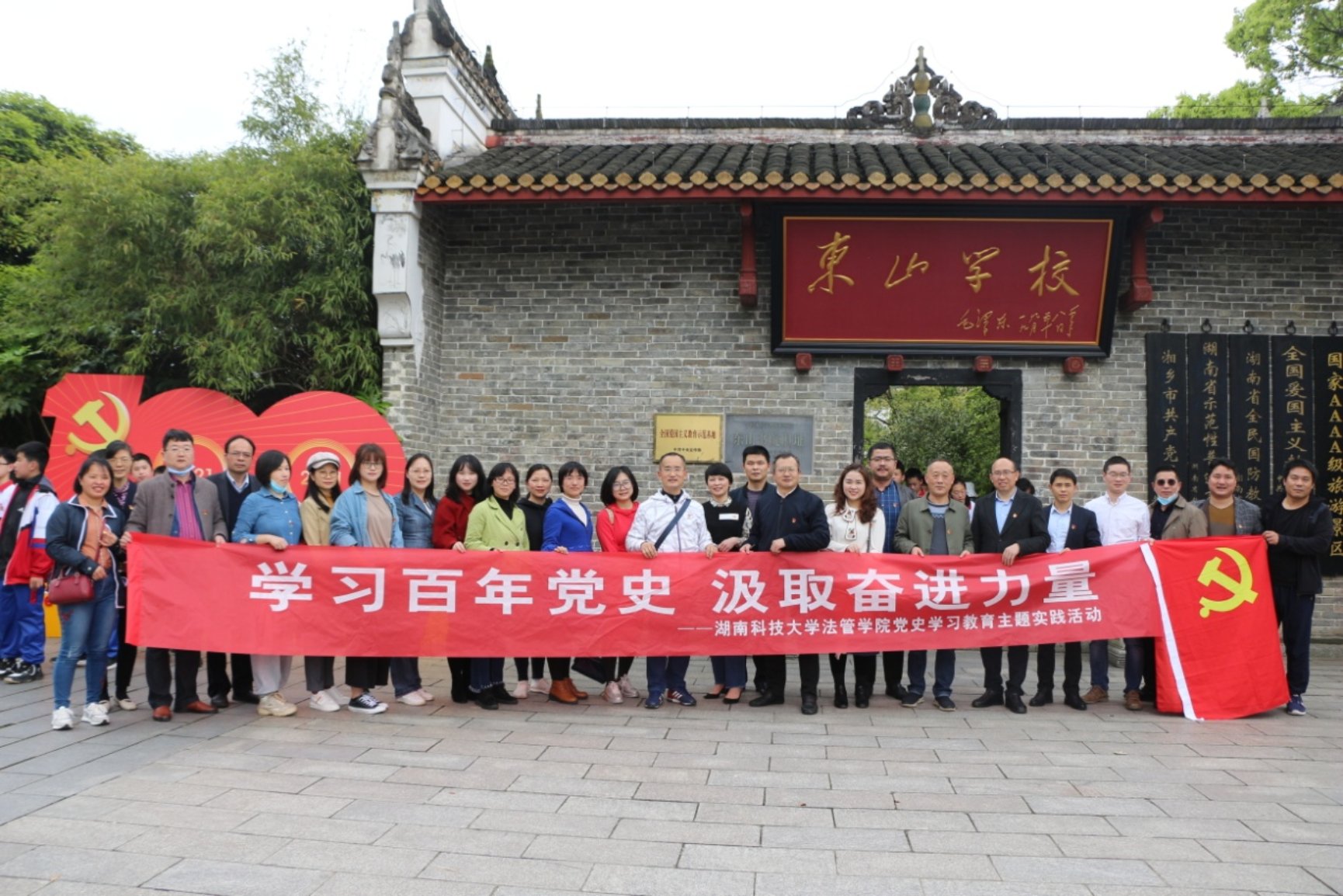 为了庆祝中国共产党百年华诞,深入开展党史学习教育活动,4月20日下午,bevictor伟德官网教工党支部全体党员前往湘乡市,参观了少年毛泽东曾经求学的东山学校旧址以及建国大将之一的陈赓同志的故居。