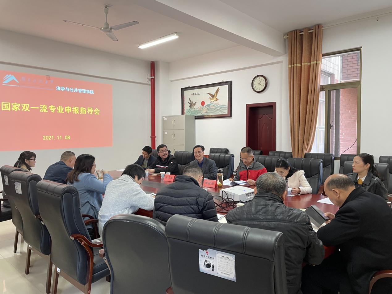 2021年11月8日下午,bevictor伟德官网国家双一流专业和国社科基金课题申报专家指导会在立言楼A427召开,湘潭大学党委副书记廖永安教授应邀莅临指导。会议由bevictor伟德官网党委书记邱帅萍主持,徐德刚、李云霖、胡正昌、宋智敏、马驰升、王明、胡之芳、徐金燕、吴四江、易卫中、向明、李倩、刘鄂、章小兵、雷连莉、张美玲、雷勇、李凤翔等老师参与了交流讨论。